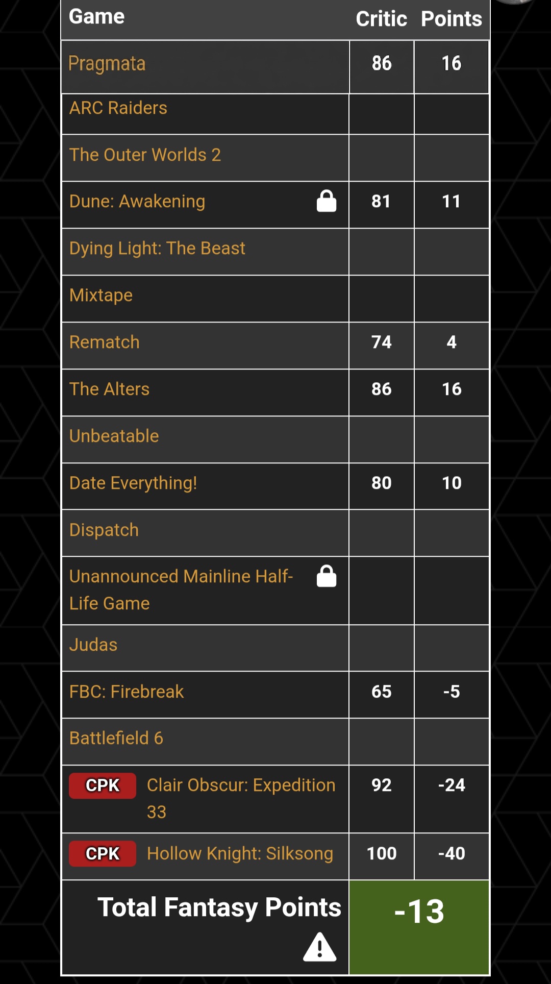 YOOOOOOOO my game critic score fantasy league is doing NUMBERSAdding Pragmata to the roster was 100% the right move!
