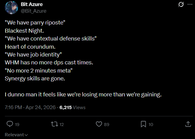 The job I'm the most curious about is probably Ninja and considering it's basically the job that is anchored and profits the most from the burst window, it's going to be a challenge to adapt it. Just going to wait and see.