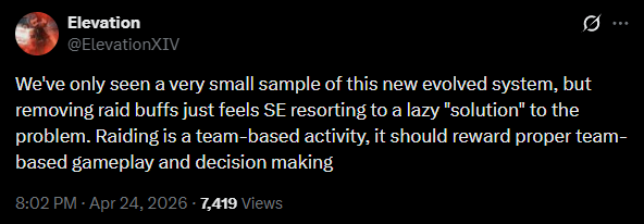 >>737593652The reason that all of the recent content has been flopping and not played isn't because it's not HARDCORE enough, it's because the jobs are so monotonous and uninteresting to play. If the Evolved mode works out and jobs have some special spice to them again, you can multiply the milage you get out of ANY kind of gameplay content by playing it on different jobs.