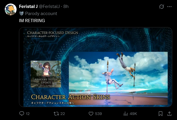 >hire one league/fighting game autist who loves final fantasy>he makes PvP fun again and was responsible for some of the best eras of some of the jobs>and now he's playing to the game's console-designed strengths to actually make jobs fun againIt really highlights how fucked up games development can get when it's so corporate that no one sees a problem but the one younger member that isn't entrenched.