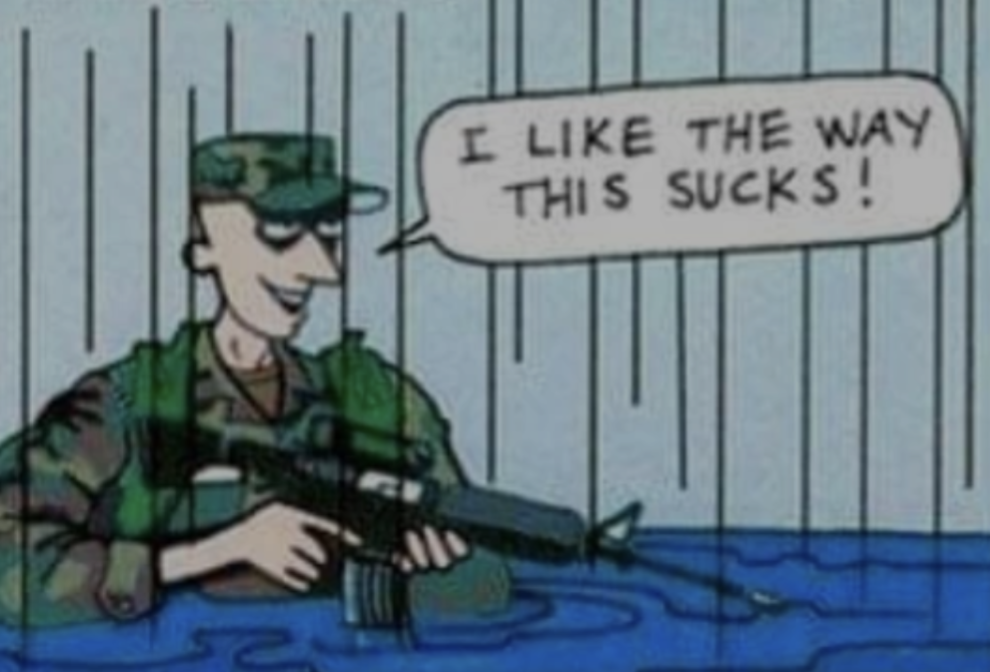 i like this one a lot actually because its an abstraction of how in combat you can still fuck up a reload despite doing it 100 times before.