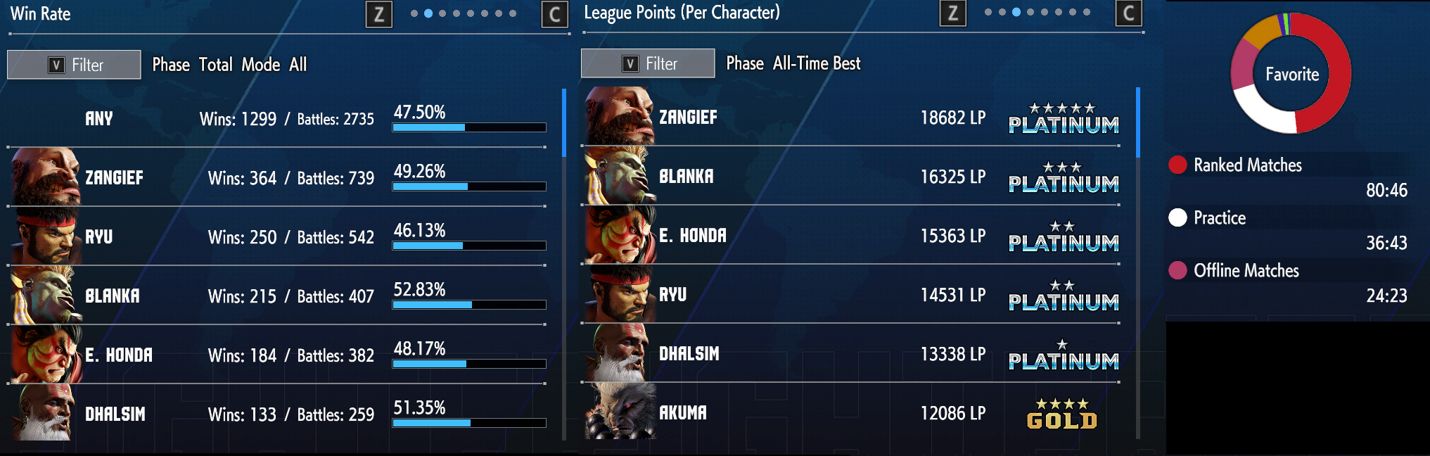 >>737622470ranks are weirdly inflated in this game but i don't mind that much. it probably keeps people playing for longer if there if there is a constant sense of "progression", and its not that serious. i'm someone that unironically liked GGST tower because it kept things kinda broad, though admittedly the top guys could have done with their own master ladder beyond celestial. i got into diamond just from picking up bison, spamming foot press and doing his combos - yet i could still lose to any random silver guy just mashing. oh i just caught up with the thread and yeah basically this >>737625481