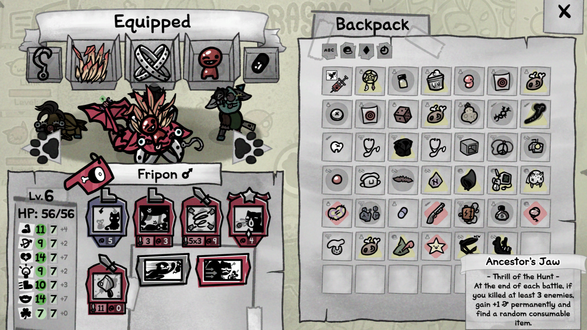 >>737648894>>737649143>>737649356It's shit like that that makes it impossible for me to take Mewgenics seriously as a skill-based gameYou could beat TBOI with no items if you were just good enough at dodgingSometimes Mewgenics will just strip all agency from the player and guarantee a loss because it's funny
