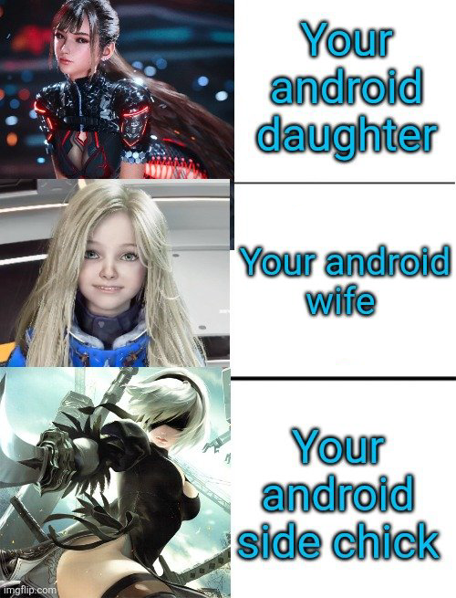Sorry but I prefer my android wife to be white and blonde blue eyes. Yes I'm brown. AmA