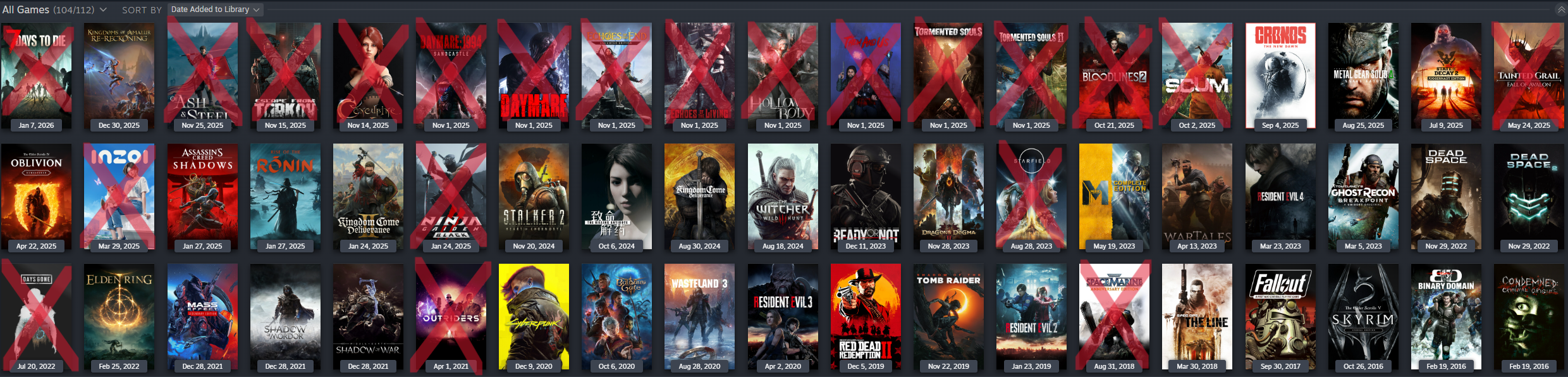 I still haven't played >elden ring>gta v>cyberpunk 2077>red dead redemption 2>fallout 4The last "new game" I purchased was dark souls 3 but I bought it in 2020 during covid. I couldn't finish it, it just wasn't for meAll the games I play are old games>Dark Souls Ptde>Fallout New Vegas>Battlefield 3>civ v