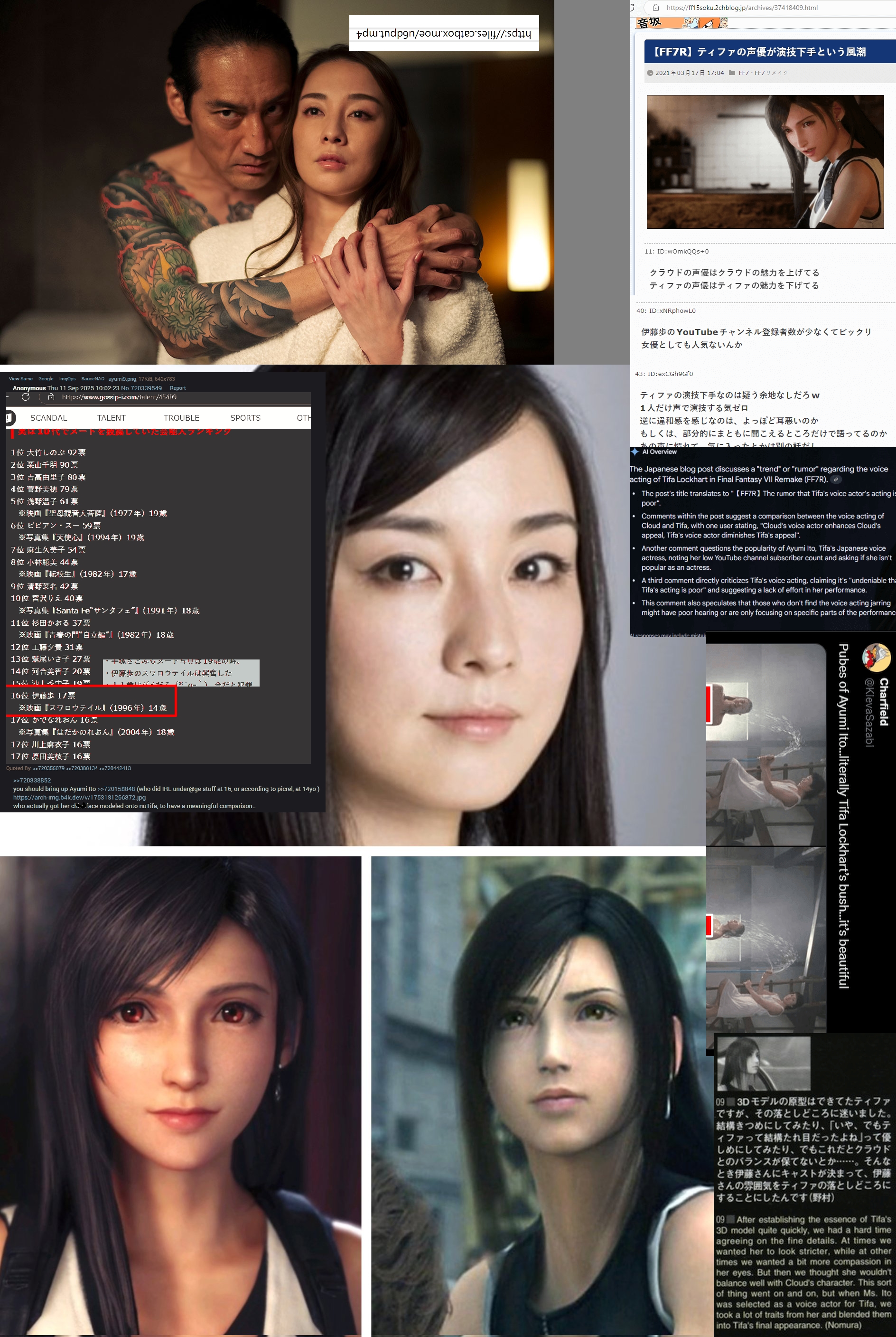 >has a face modeled after a hoe who did IRL 14yo pdf nudity(plural) back in 1996 ( https://arch.b4k.dev/v/thread/711964703/#711966165 ,while she's already quite "famous" in certain corner even before that one.>btw she sucks cocks now https://files.catbox.moe/u6dput.mp4 )>Even the tabloid >>737385957 back in the day was making fun of this pornbait with an IRL hoe's face.>has not only the appearance design but also lines and events copied from a literal 1993(=97-4) porn game.>>737385101And now crying "s-stop noticing!! Tifa is not made for porn!">>737637979