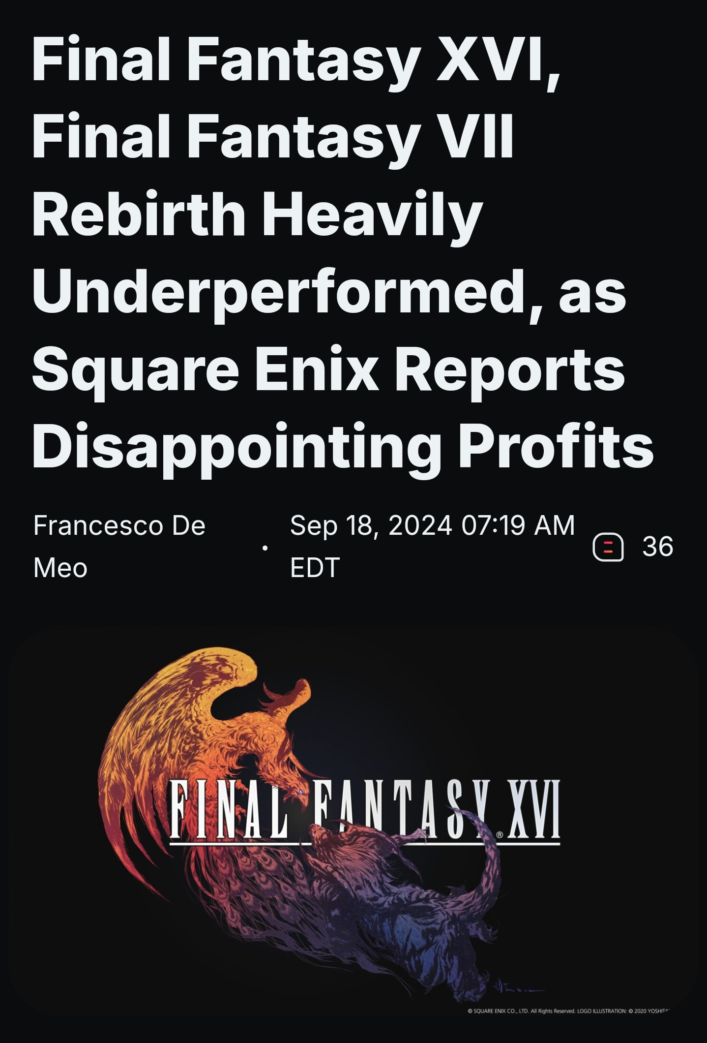 >let's wipe out what little vestigial cultural relevancy and presence FF7 still has leftThat's our Squeenix.