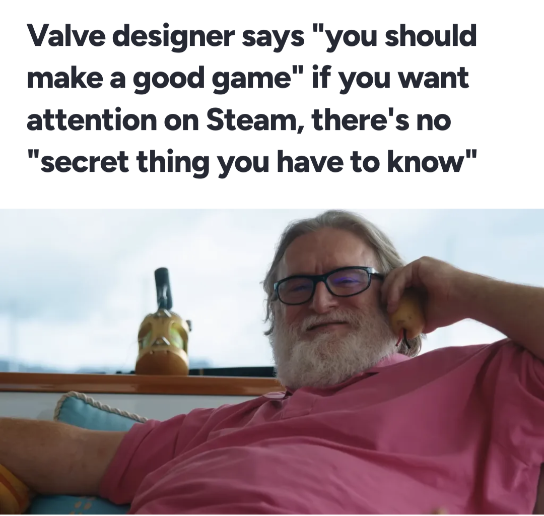 >>737640498The original post contained an explicit reference to Steam games' developers complaining about "lack of marketing" though.