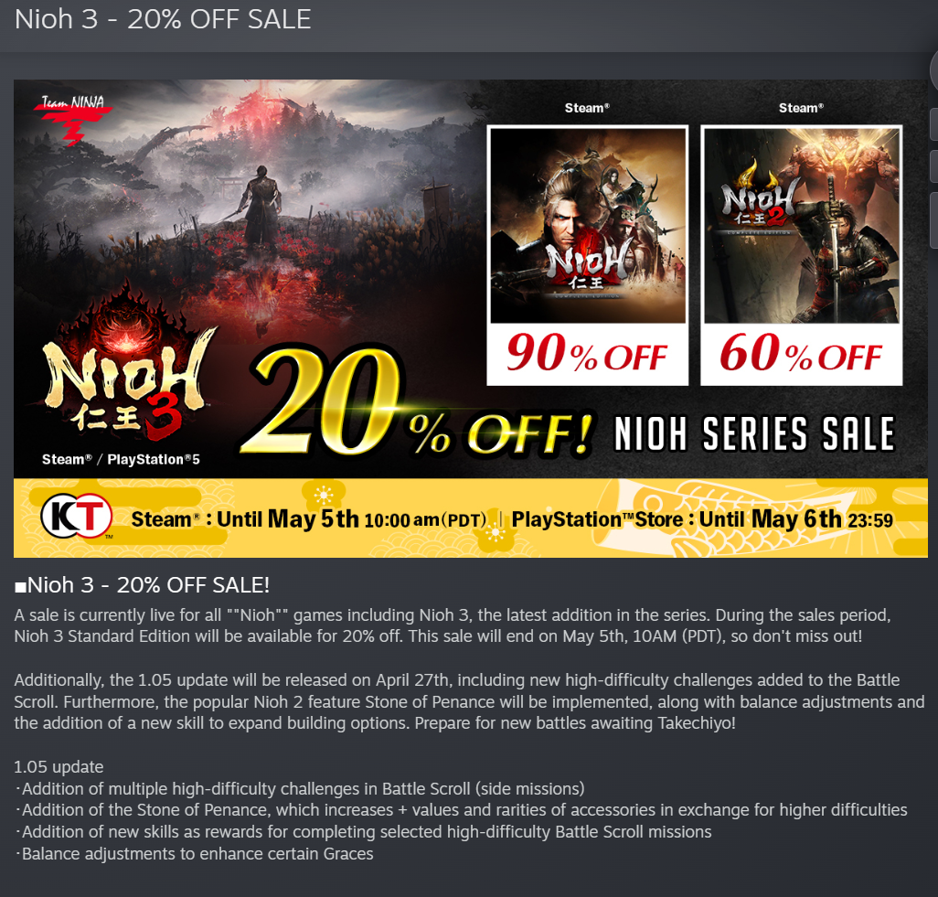 should I buy nioh 3 now or wait for a better deal?