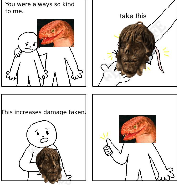 >>737661843Runes are basically cheatcodes that let you increase your size. Our tarnished simply prefers to put those runes into actual strength than a glorified big head mode