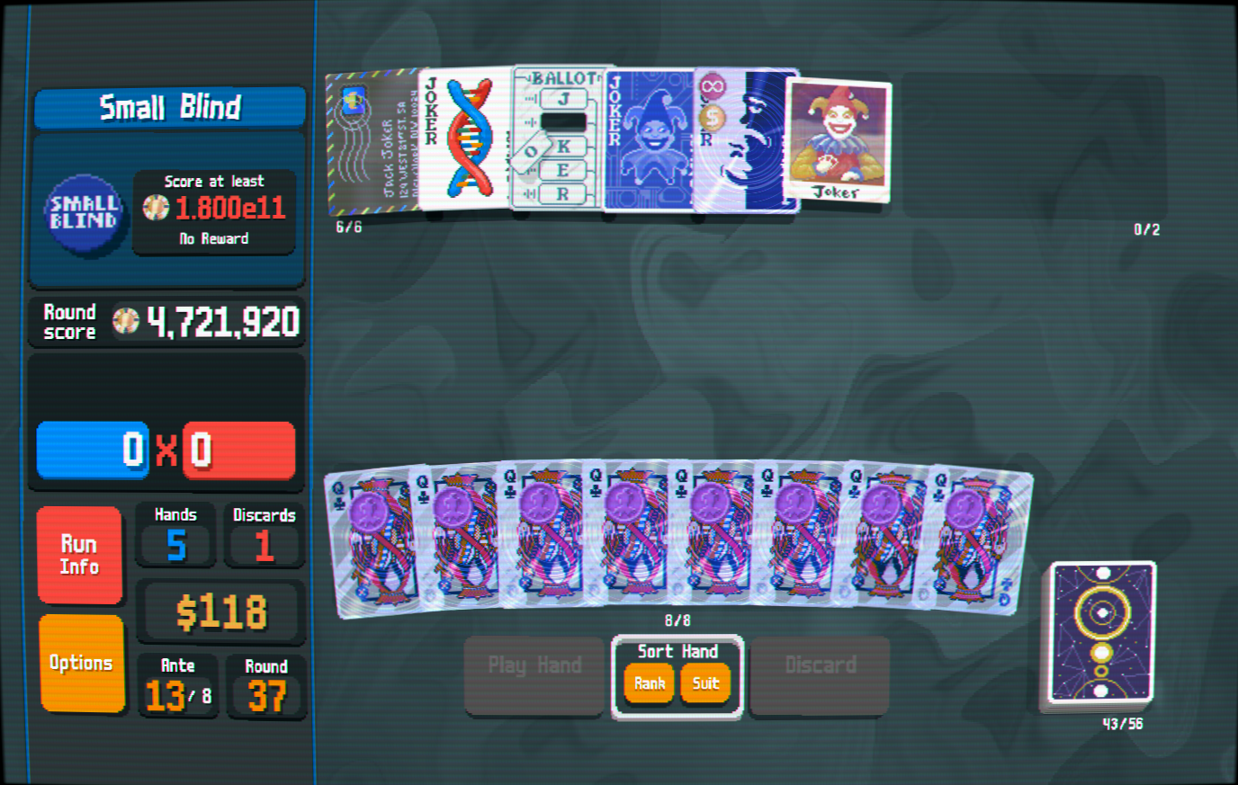 >>737647106Reworking the boring stakes like -1 discard because all it does is force you to play pairs. Some new jokers as well, but no one but Doc and Thunk probably know what they are