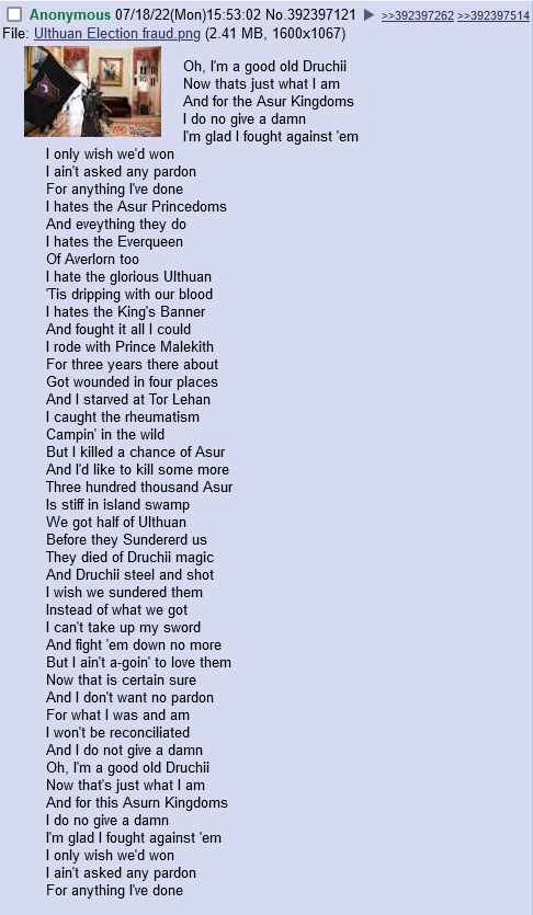 >>737662594>And now the End Times took that misunderstanding and ran with it, completely shitting all over the great elven lore we once had.Well, when you think about it, the End Times also is a time where the world is fucking ending in a tide of unending chaos.