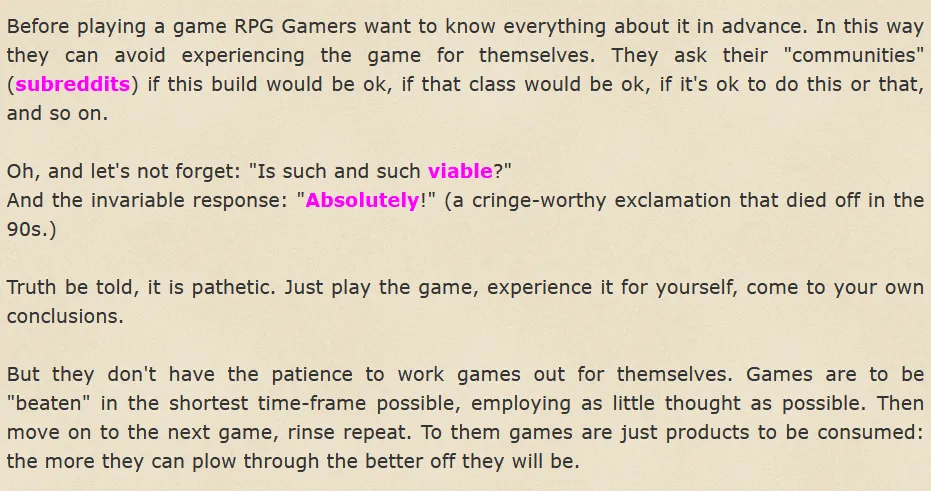 >want to play CRPG>spoil myself and check all party members to make sure i'm not using the same class as another
