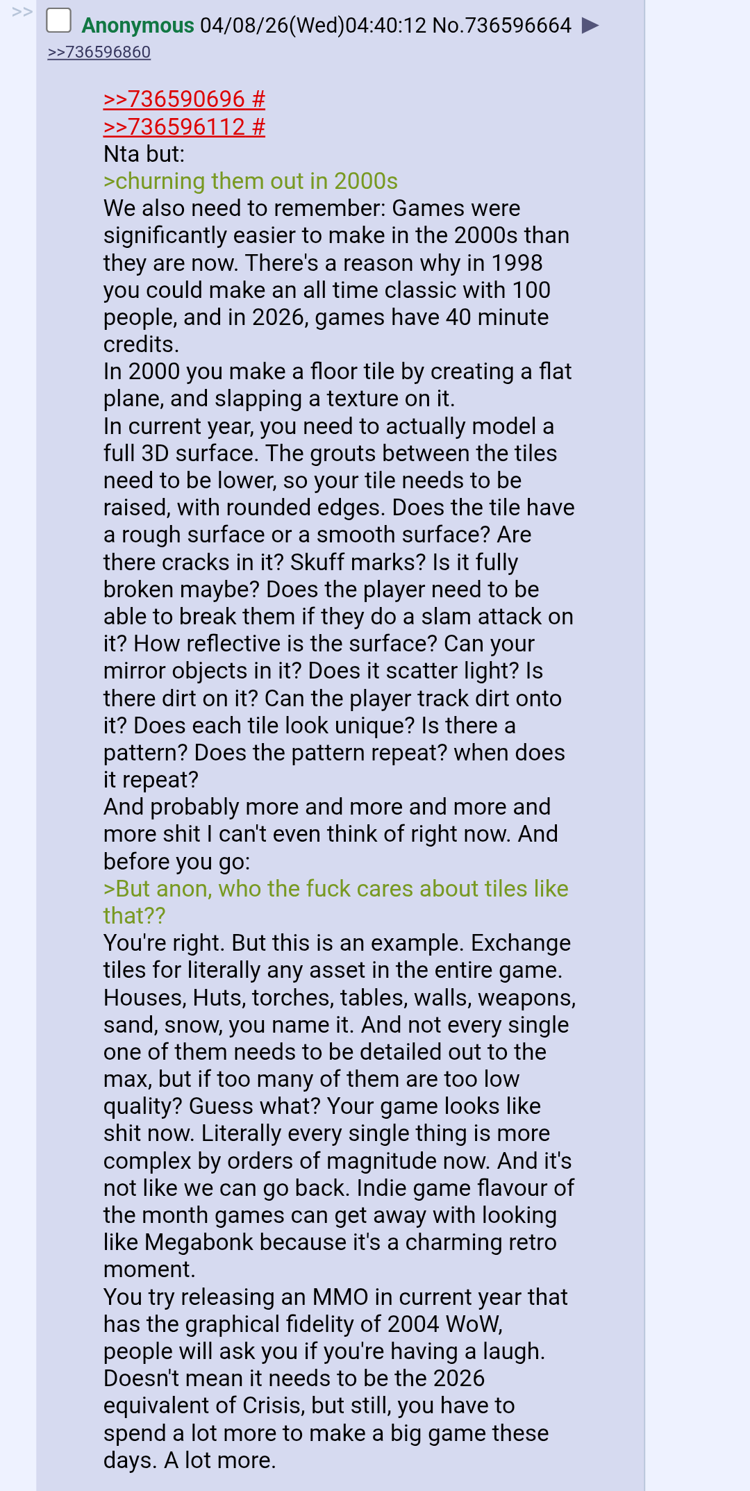 >>737663121Nintendo was making PS3 level games, those took less time to make. The PS4 era which they're now in is when games started taking a lot longer.