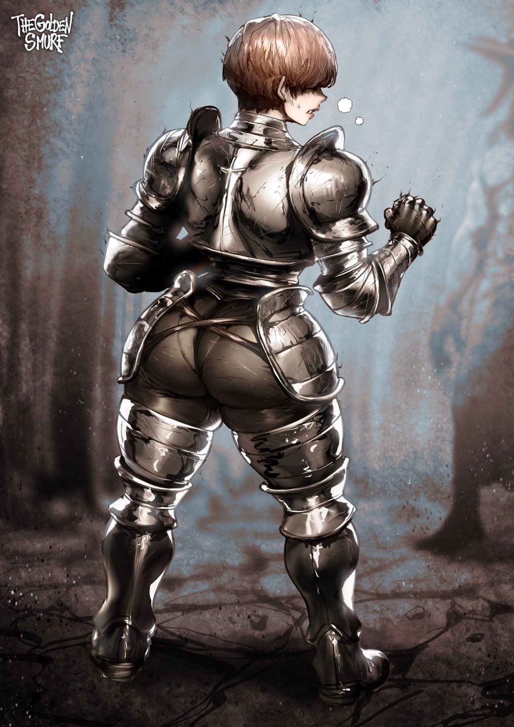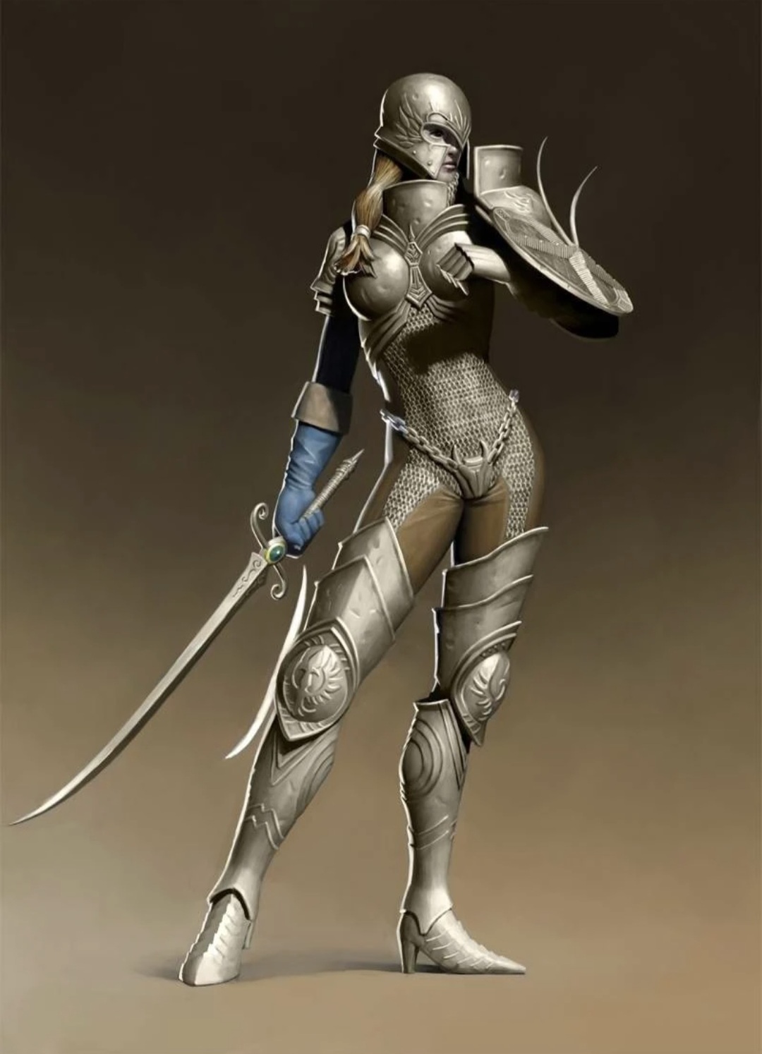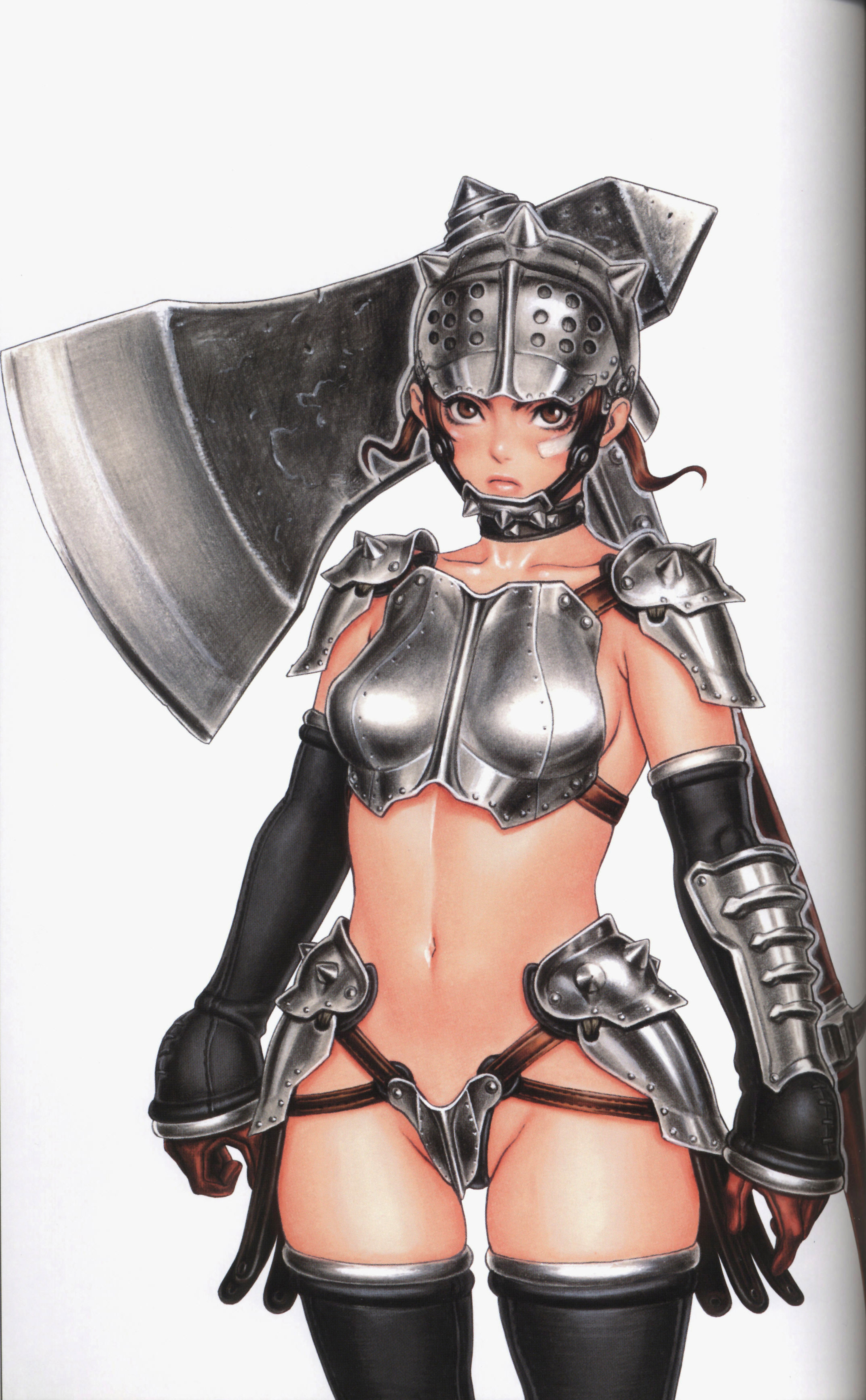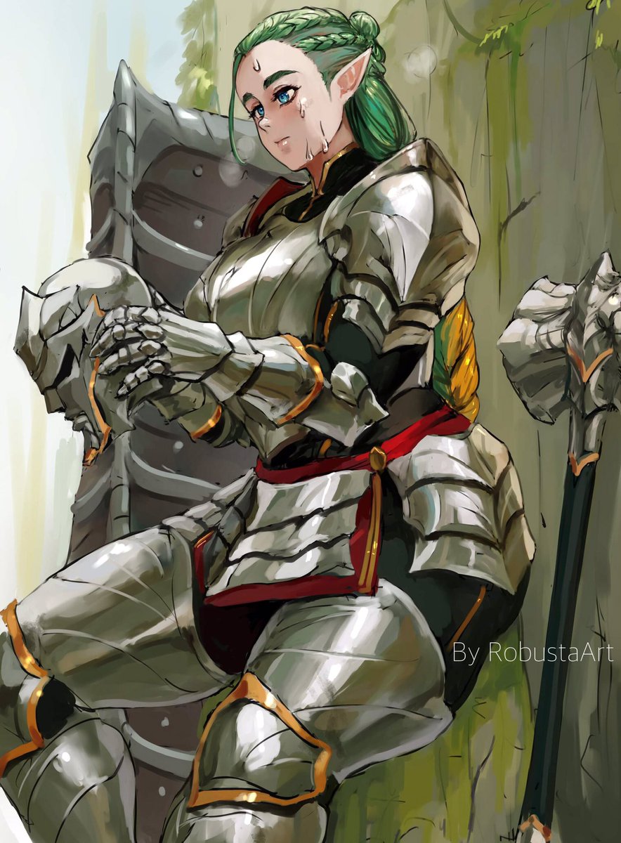 >>737670708Full body plate and leather, but undergeared sexy bits like armpits, thighs, vagina, breasts. This means all these parts are covered, at most her upper thighs and armpits may be nude, but instead of wearing a thick hauberk, her breasts are sorta just covered in cloth totally unprotected, yet still fully covered. Aesthetically she is geared, practically she is exposed, sex-wise we can ogle her shapeliness without feeling like she's too oversexualized and too unrealistic.