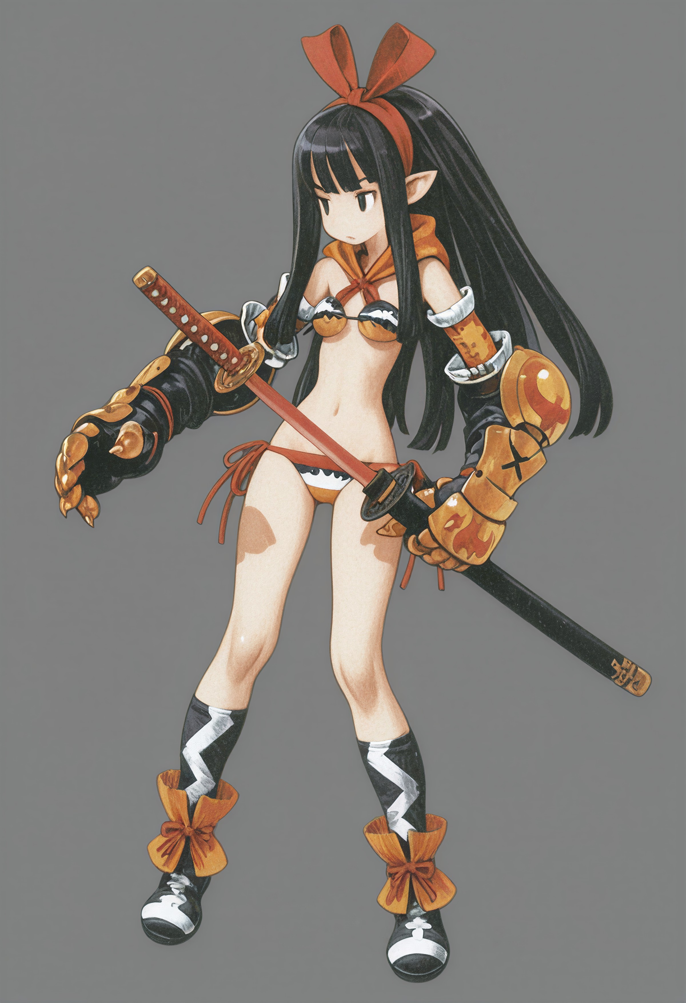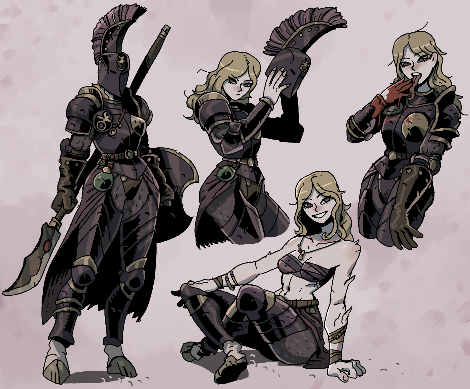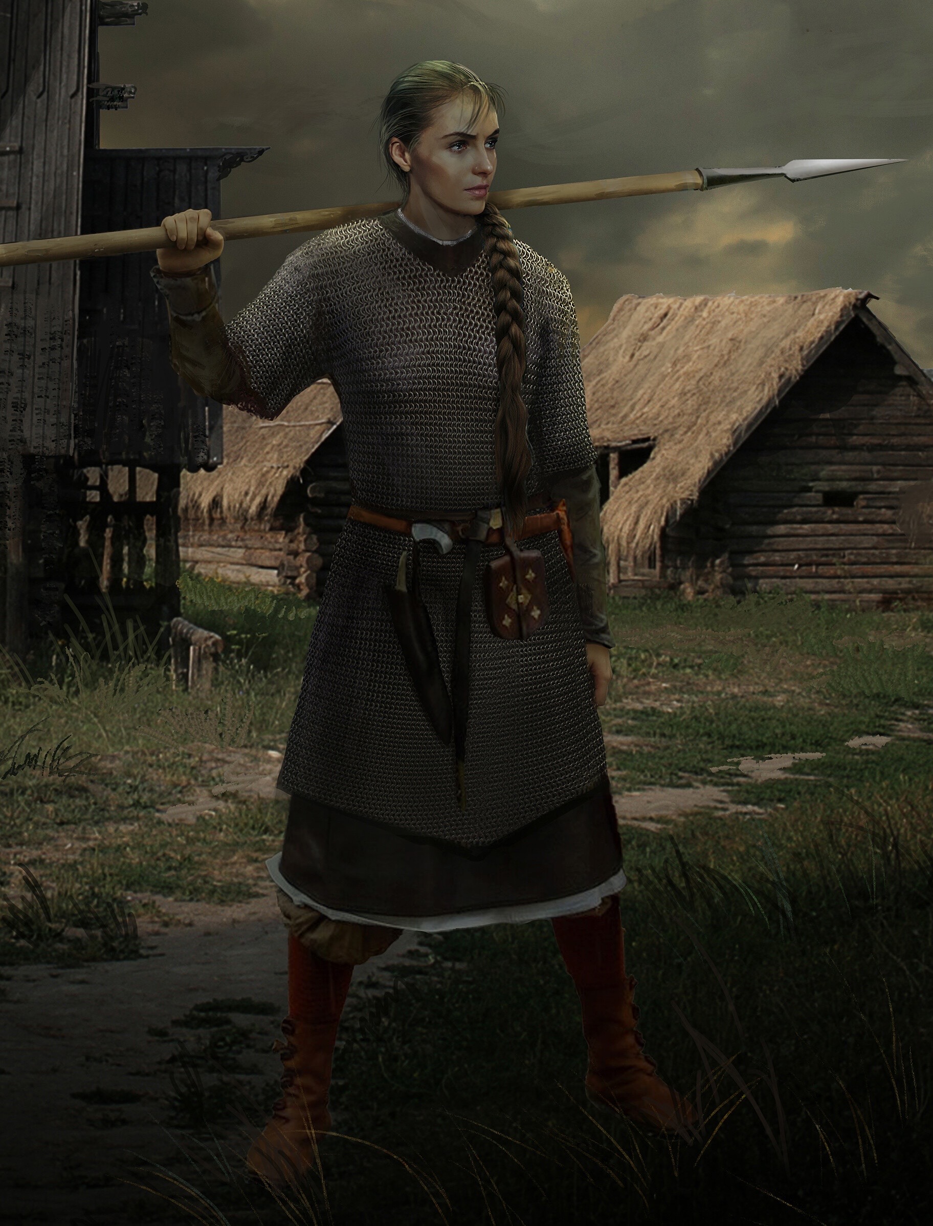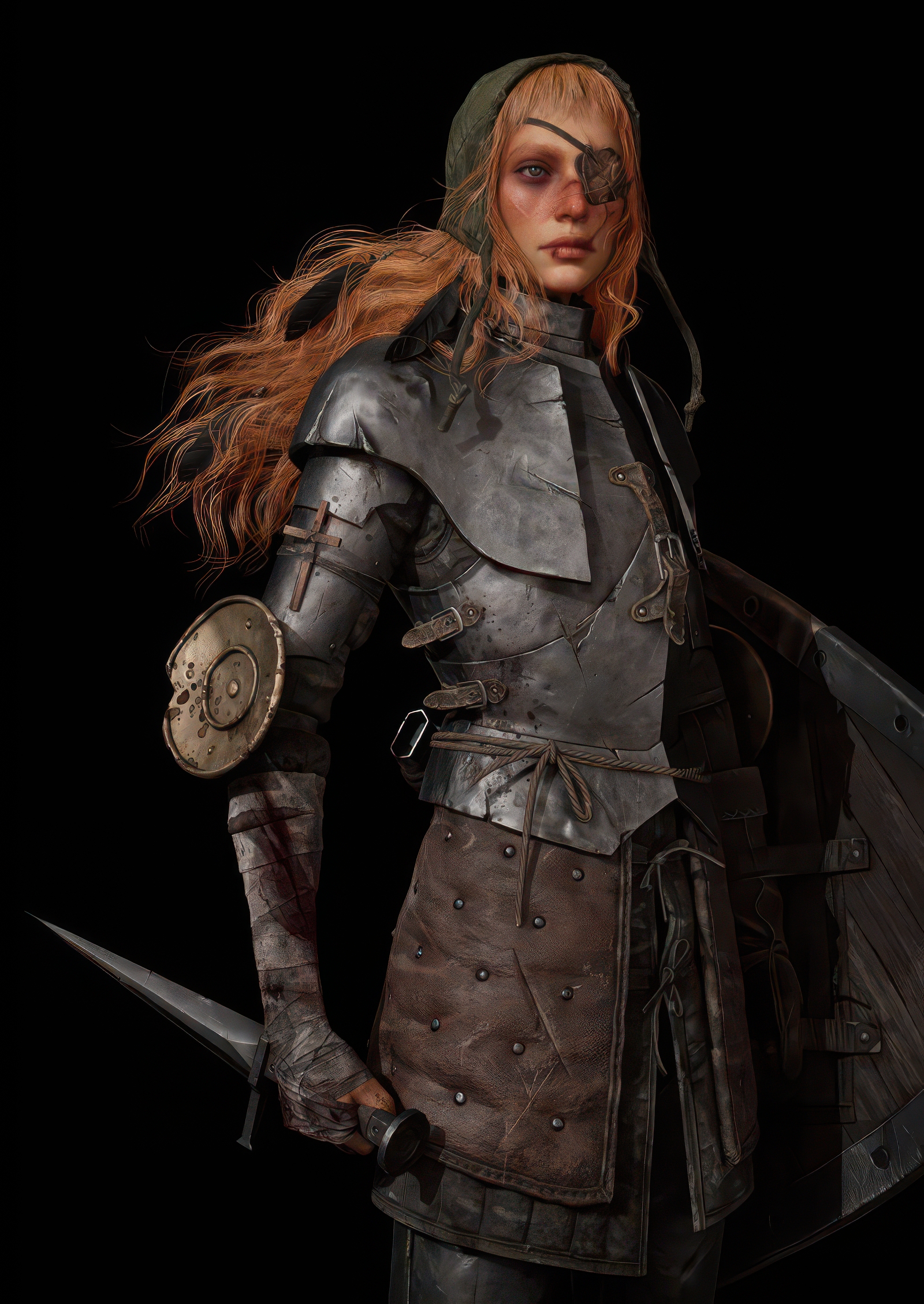 >>737670708Full body plate and leather, but undergeared sexy bits like armpits, thighs, vagina, breasts. This means all these parts are covered, at most her upper thighs and armpits may be nude, but instead of wearing a thick hauberk, her breasts are sorta just covered in cloth totally unprotected, yet still fully covered. Aesthetically she is geared, practically she is exposed, sex-wise we can ogle her shapeliness without feeling like she's too oversexualized and too unrealistic.