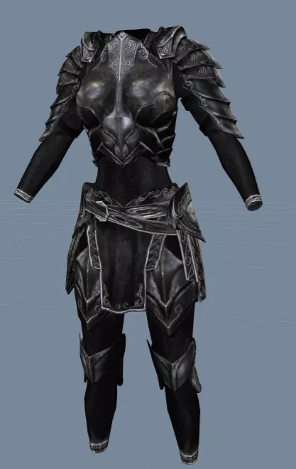 Full armor + helmet with ample room to imply big tits, ass, and thighs. Not actual boob armor though, that's low class.