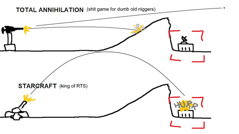 >>737678328>Nigger its a fucking video gameVideo games are supposed to be virtual versions of tabletop games (which were just called 'games' back in the day)Part of tabletop rules would be dictating that a unit cannot hit because the angle of projectile would not allow for it, which in turn should be represented in the video game itself.Failing to do so is a failure to immerse the audience in the game, which makes for a less interesting game and less detailed combat.