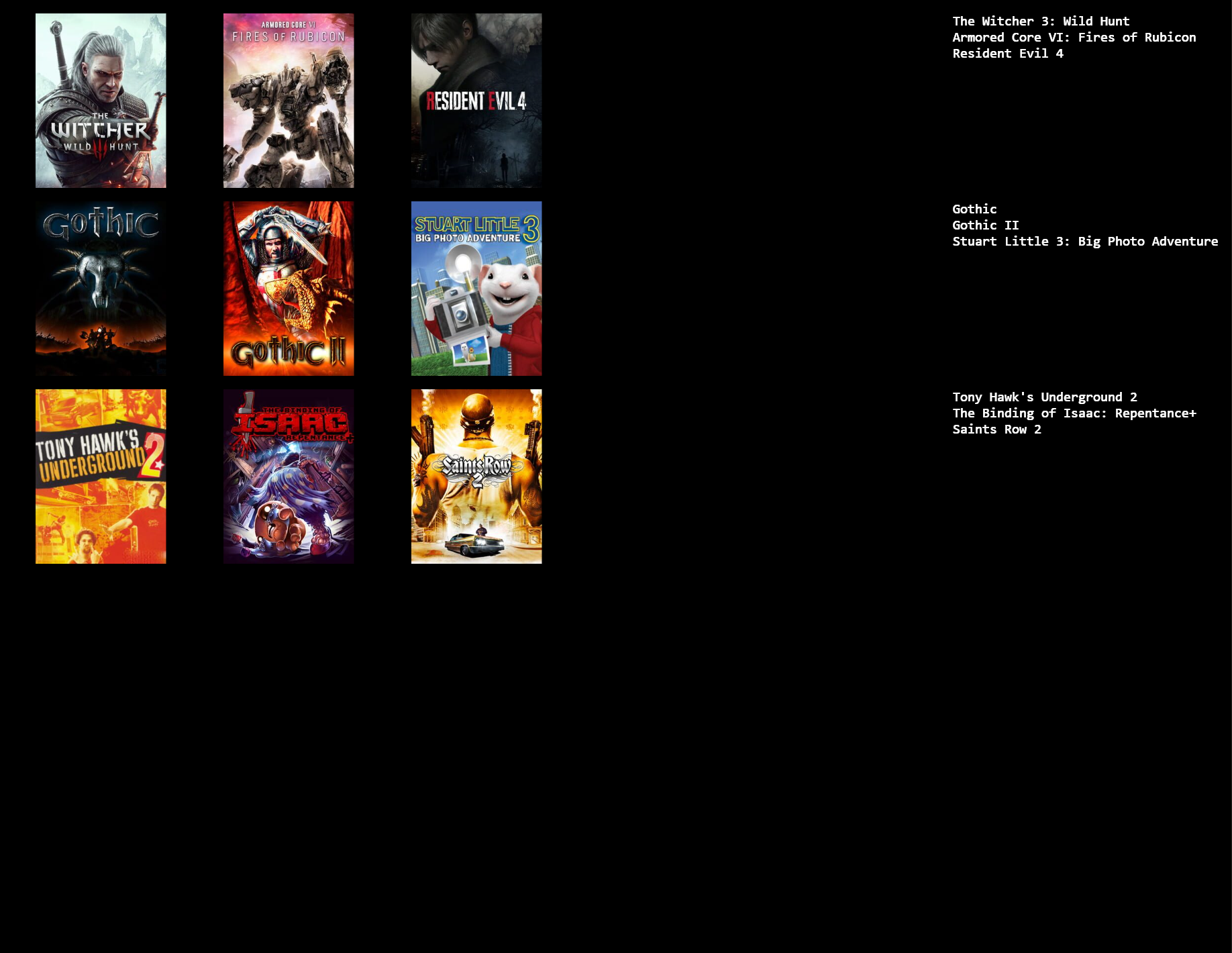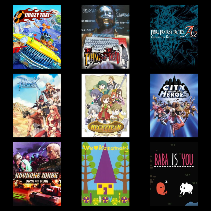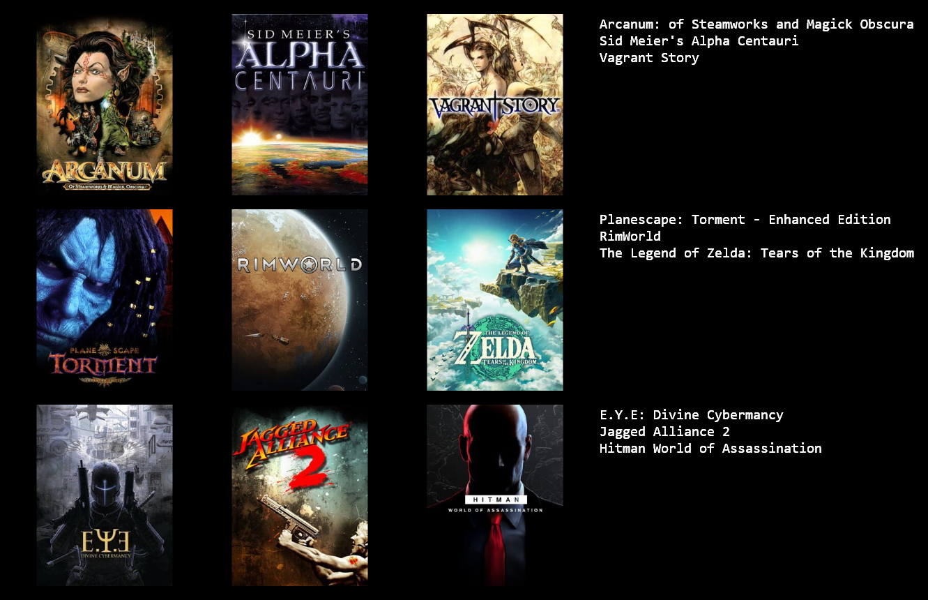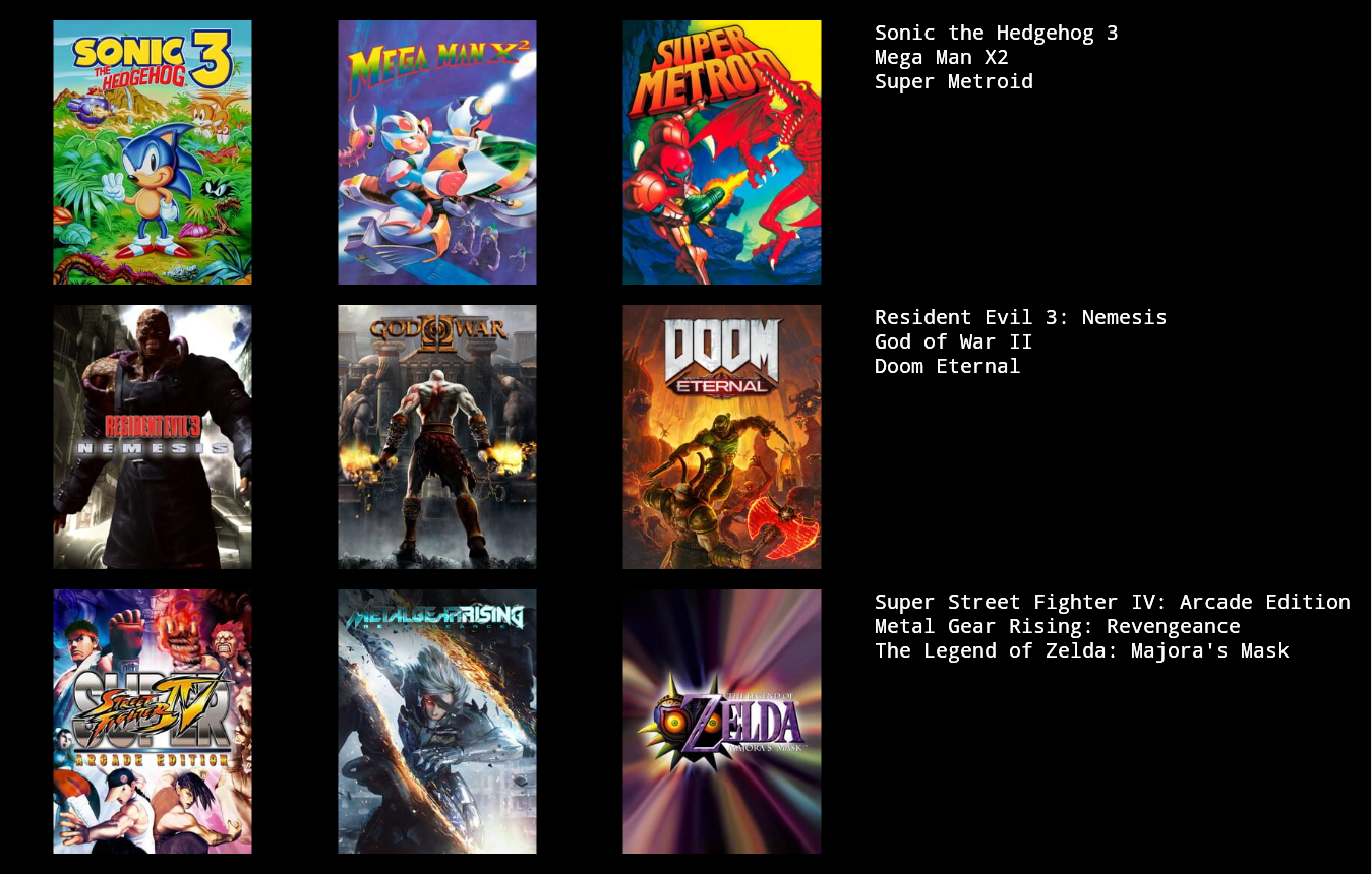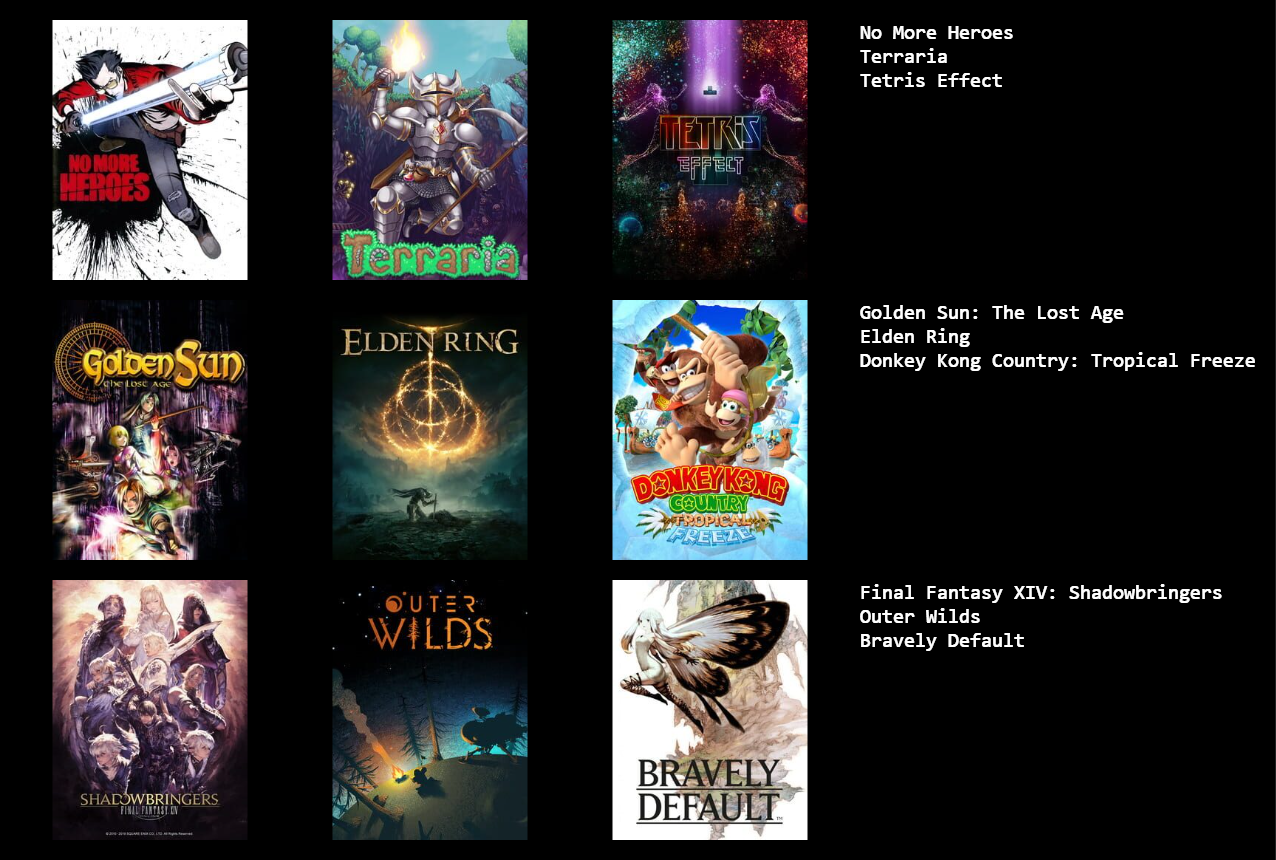 >>737695146So just a 9 games were playing now? or 9 games that are all time favorites? or 9 ganes from a genre?