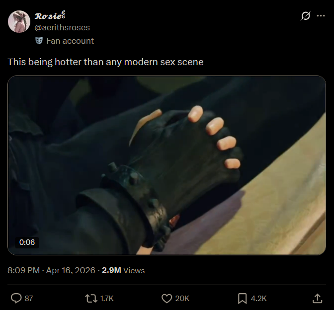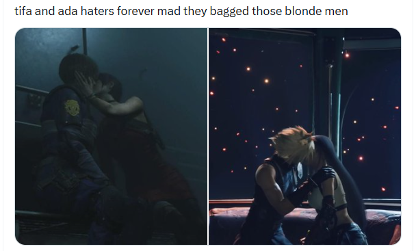 Why do I find these couple things cringe asf in real life but when I think of doing it with Aerith it's suddenly ok?
