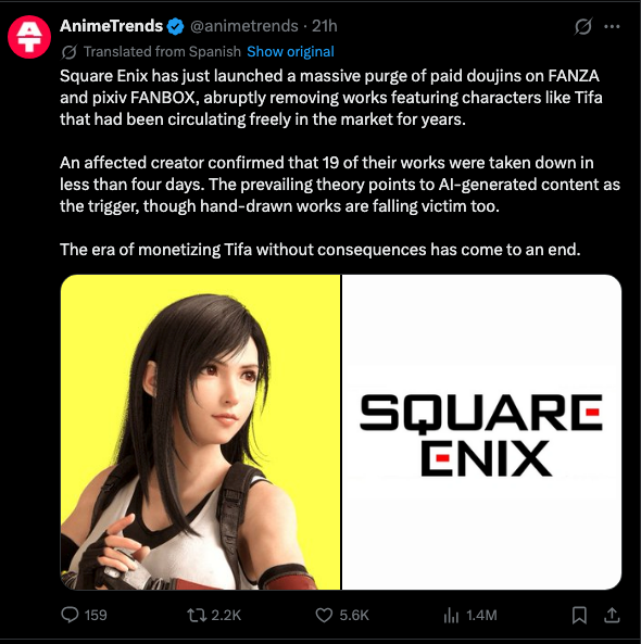>>737690609>paid doujinsThis doesn't effect me, but still sucks.I did plan on commissioning some Aerith recently, wonder how thorough they will be with the monitoring