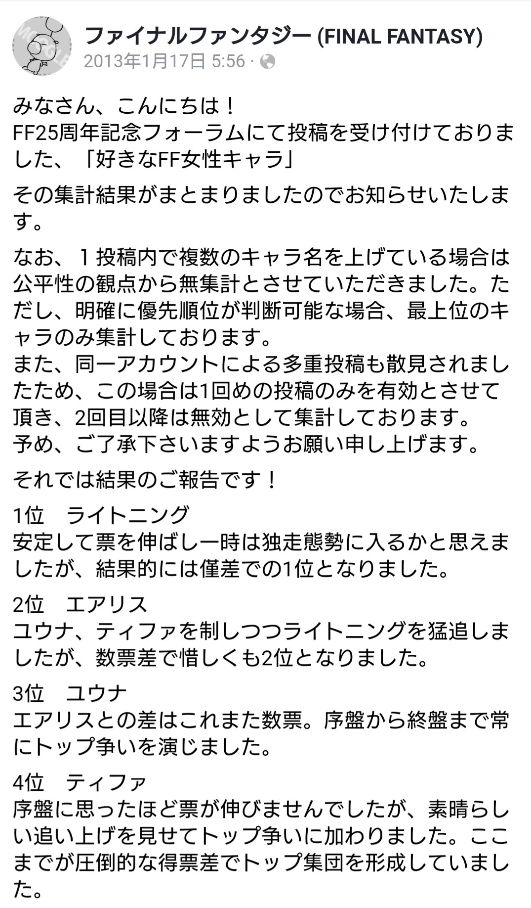 >>737742940I am curious how Tifafags explain that. You can say it was botted but NHK polls take pains to stop that AND Tifa was only in 9th place.