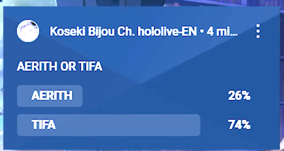 >>737742884>random indian pollAerith demolished tifa in the big NHK poll