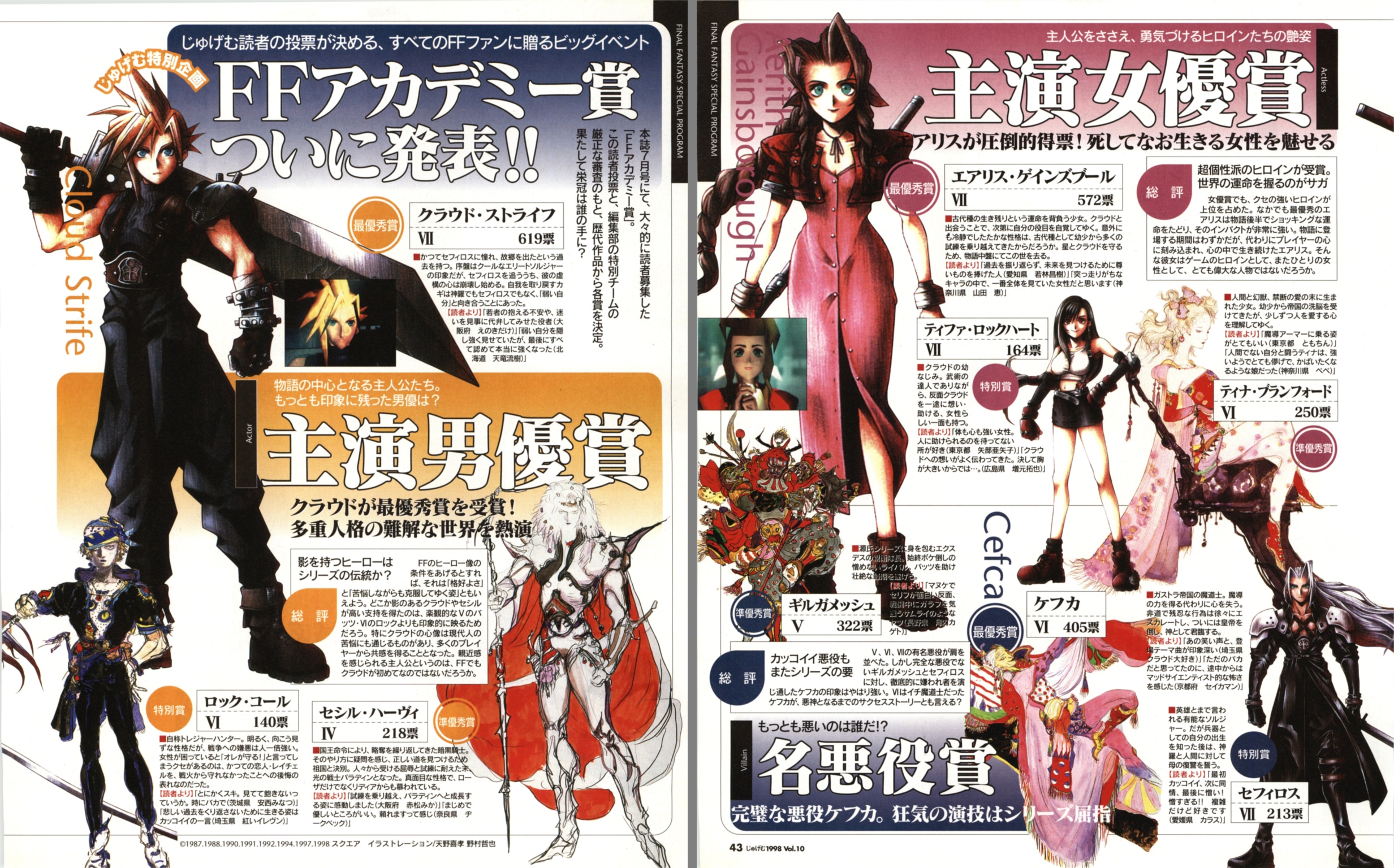 According to rakutenFirst: Tifa with 885 votes Second: Aerith with 537 votesThird: Cloud with 518 votes Fourth: SephirothFifth: Zack