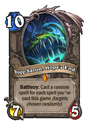 >>737731482I'm still salty about that retarded nerf. Makes no sense, just made him unplayable, unless you have room for a Hail Mary in your deck.They should have made him be specifically useful for spell-heavy decks. Make him cast a random spell for every 2, or heck, every 3 spells you've cast this game.Yogg was one of the few periods in Hearthstone where I've had genuine fun playing the game. You got to play lots of different decks, AND still have a chance to win, even if your deck was too weak competitively.