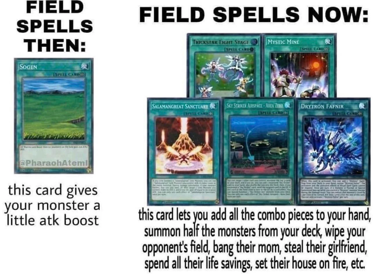 >>737730417It's funny how much this lines up exactly the same with early YGO players>ugh, I remember when you just played a big monster and won, why is the game so filled with counterplay and monsters with effects now. It's like they actually made a fucking card game or something...