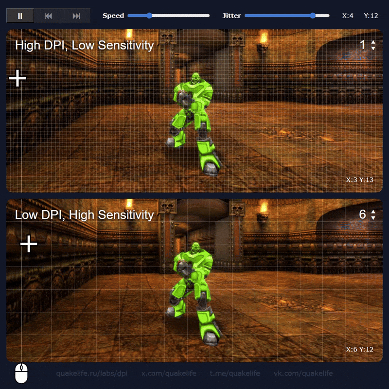 Extreme example of the aliasing caused by increasing your sensitivity in game instead of DPI.