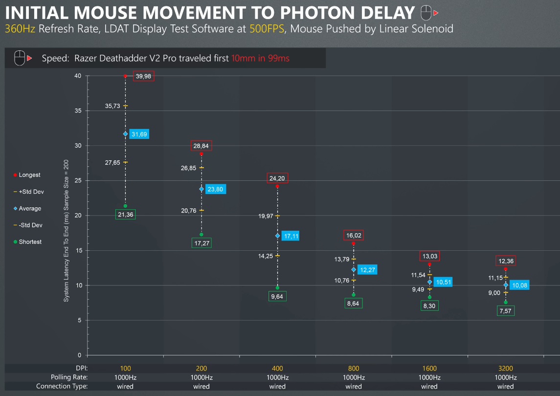 >>737726587>Are you sure this is not simply "the lower the dpi the more movement needs to be done to start mouse movement, hence high delay (of the first action, not continuous actions)"?>Are the results adjusted for sensitivity? Cuz it would be interesting to see if there is a difference between (let's say) "100 DPI with sensitivity 10" in game compared "1000 DPI with sensitivity 1" to see if there is a delay because the sensor isn't registering the movement or simply because the game doesn't update the camera position because the input value is too small!wow nice test lmao