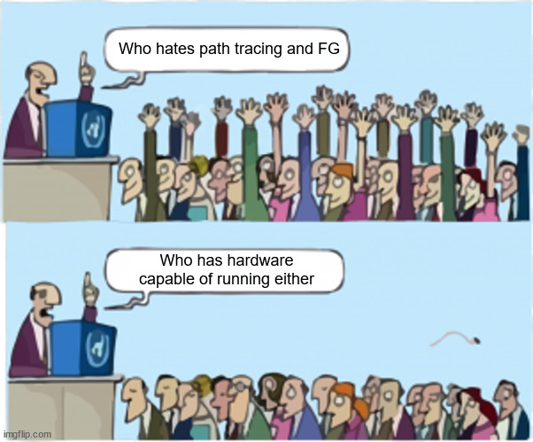 it will be hilarious once next thing comes out and path tracing becomes what ray tracing became now and all shills are like yeah well it is le perfect now