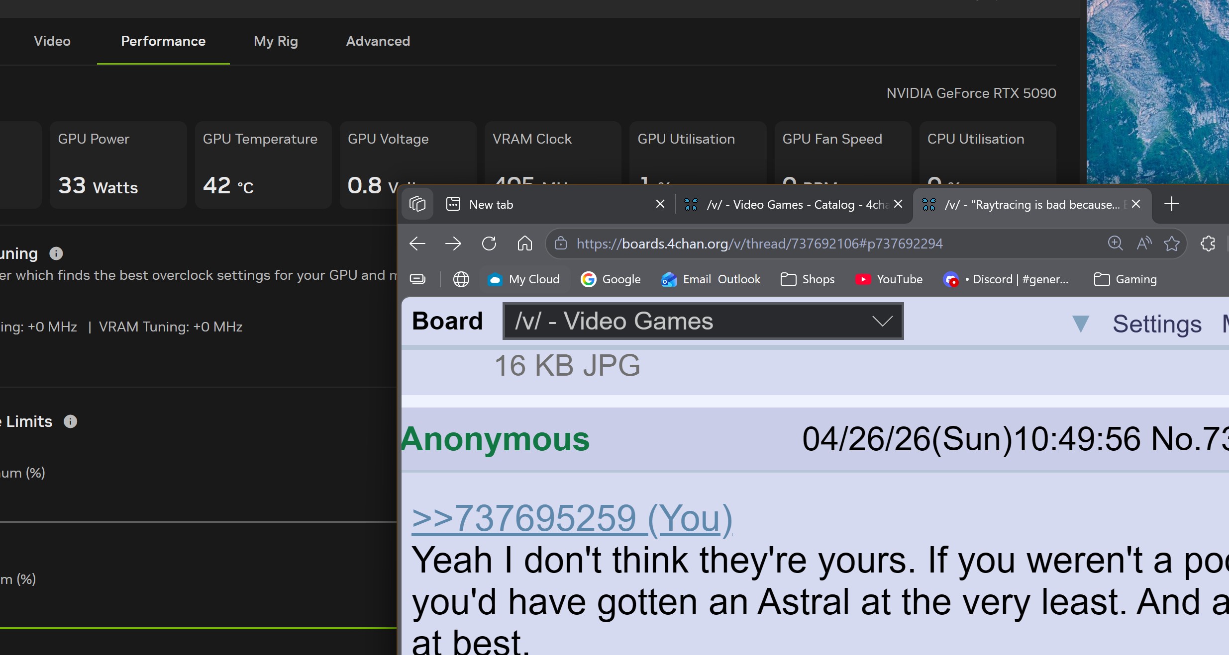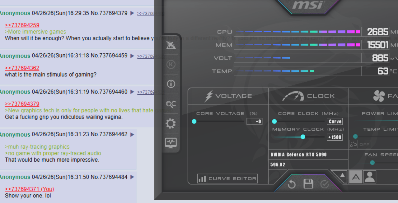>>737692106>BECAUSE I'M POOR OKAYOwning a 5090 is not the kinda flex I expect from someone who is not poor.