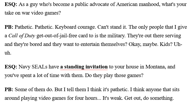 >>737714691>like 2 million dead in Ukraine>15 US soldiers dead in Iran warThere's not even a reason to gaslight teens into liking this slop any more. No one is signing up to get put in a body bag, blue collar work has a higher fatality rate than being a first world soldier.Deaths in the US army occur at 1.3 to 100,000 versus civilian deaths being 3.4 to 100,000. It's time to get normalfags into something else.