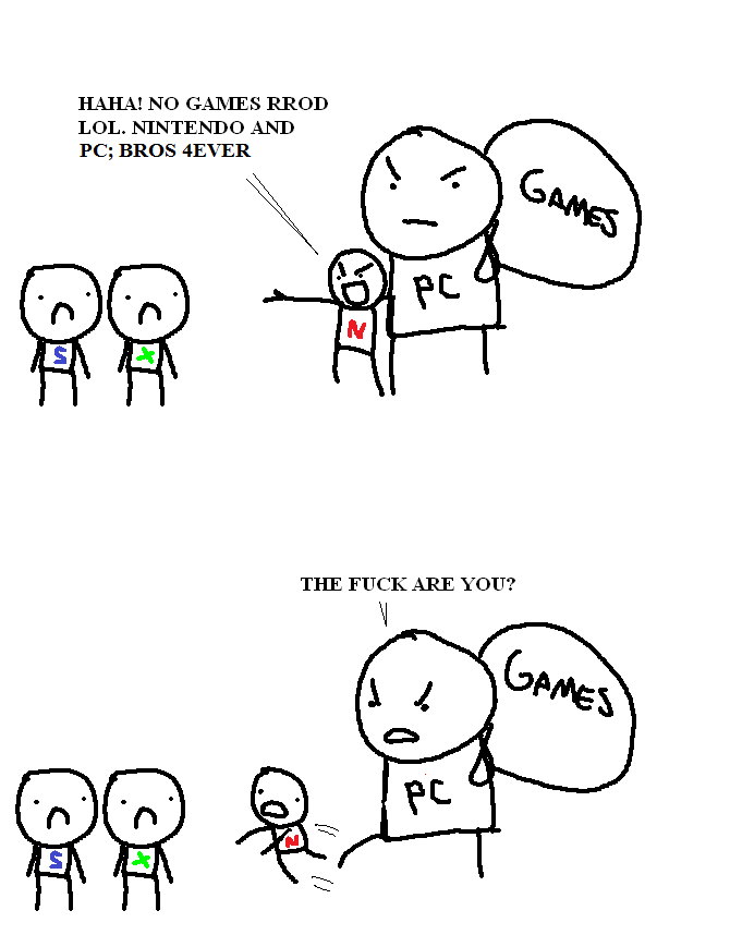 >>737727912Nintendo has games though, that's why they're winning. Your image is retarded.>emulationDoesn't mean shit, if it's not on a store that you're purchasing from, it means nothing. Emulation just means you're poor thirdie that can't purchase games. You make me sick, not because you're emulating console games, but because you devalue PC games by ignoring them.