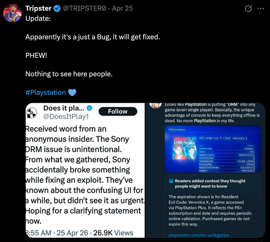 >>737728645>It's a bugHow do they know this, did Sony release a statement or something?