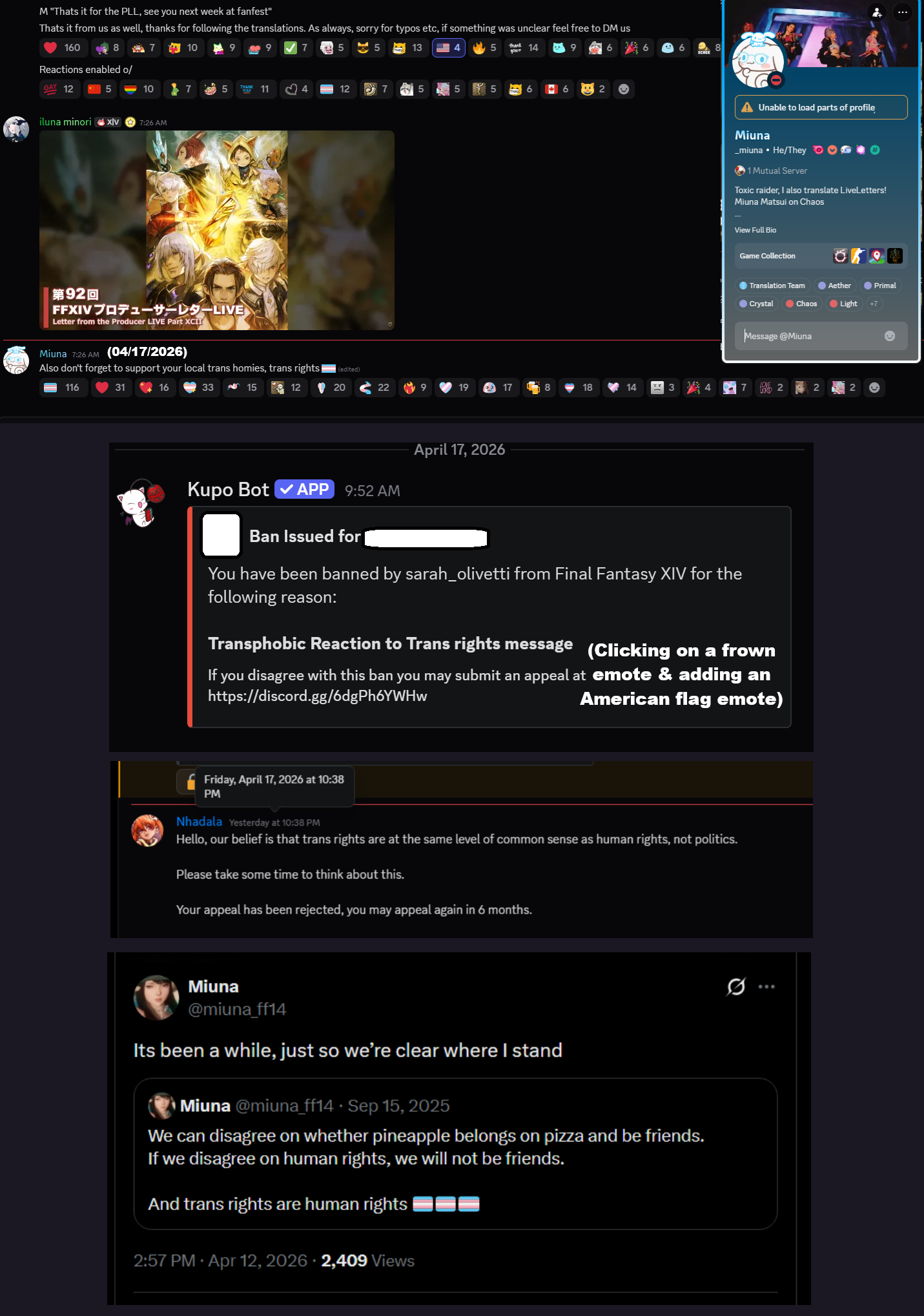 This might get a little chuckle out of people.I'm sitting in Xbalyav Ty'e, applying to some map parties when four "Heaven-Storm-Shadow-Walkers" walk in. They get their tacos and sit down behind me.Que litany of Thordan, Varis, Emet-Selch mouth diarrhea. I ignore it. Gonna have to for the next four patches right?Then they start shitting on Dawntrail as they take out their TOP weapons. This gives me an idea. No idea where it came from, but an idea.I turn around and say, "Actually. Not a bad expansion. But I guess if you hate Naruto kind of stuff, it makes sense."They all stop talking and stare at me. "What?""Well, yeah. I can understand that if you hate Naruto the idea of watching someone become hokage in fantasy armor while black gospel plays wouldn't be something you want to play."I start to turn around when I get a "hold up!"I explain the Third Promise to them, then start playing Smile on my orchestrion plugin and proceed to limit break+speen, etc moves.You should have seen them leaning in.Then one of them entered their Emet-Selch mind again."Yeah? What about all the plot holes?"I shrugged as I put on my Solution 9 glamour. "I don't read any plotholes."He pushed "What about all the Krile stuff that they pushed off screen?""Krile? Who? I missed all of it on my first playthrough. She's a Scion? I just remember her parents being annoying, but hey look at this..."I glamourer to Wuk Lamat and let loose. "She's basically the perfect baby of Naruto and the girl lion from Lion King.""Now who wants to see the dead baby storage?"An hour more of increasingly less stupid questions? There where four more positive Dawntrail reviews.I found the situation hysterical!