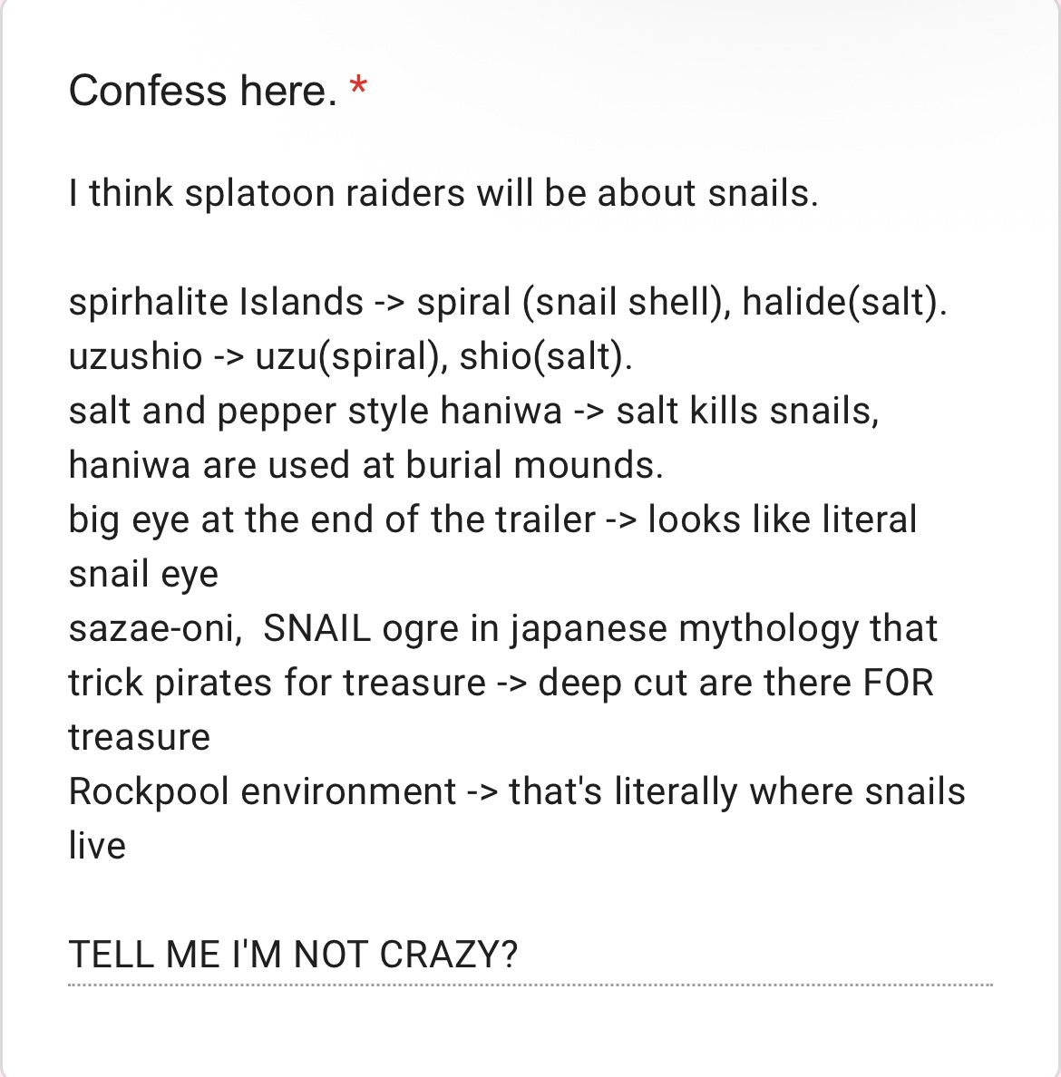 Just found out about snail theory, and I’m 100% sold. We’re accidentally breaking the seal on the evil snail god