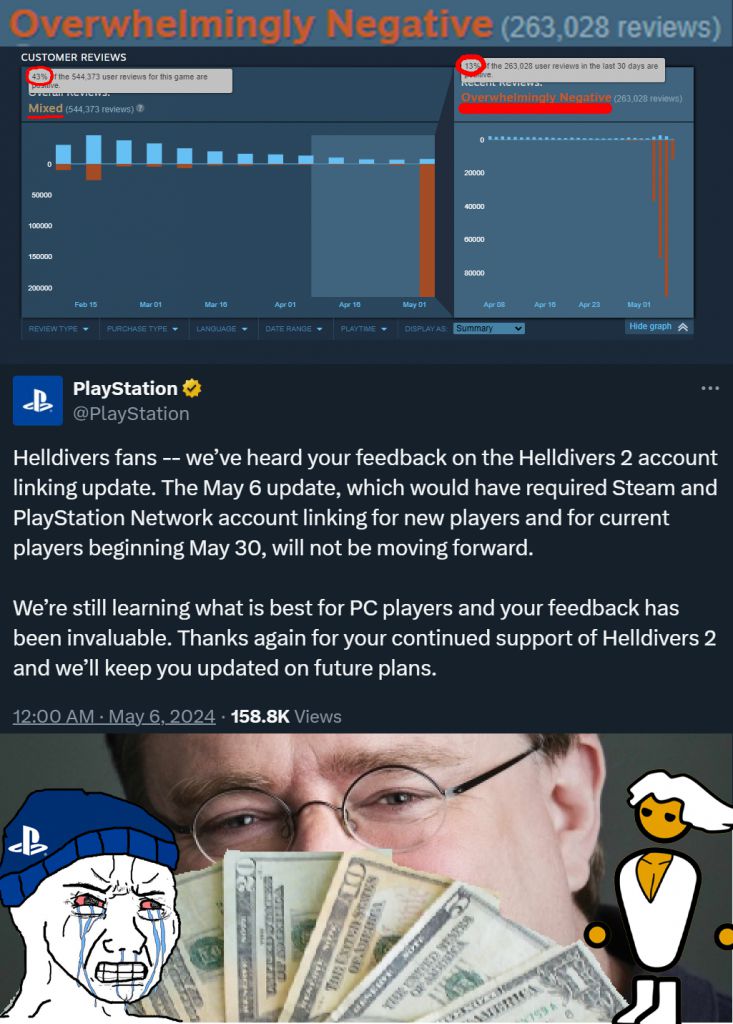 the way your post came across was you were comparing steam having drm, digital purchases that require an account to access, and taking a cut of sales