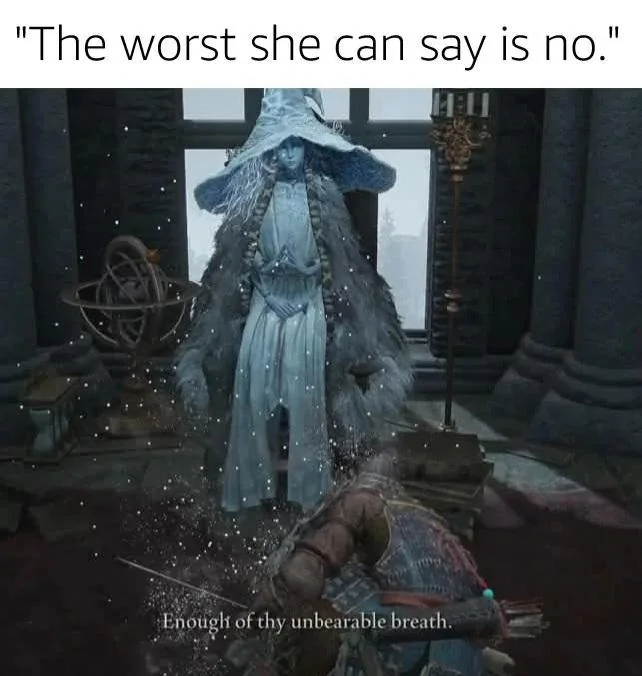 >>737830897>That’s a failure of the game, not the playerThe moment I realized that I could trivialize any boss battle I uninstalled Elden Ring.It's either that or die 15 times trying to learn his attack.
