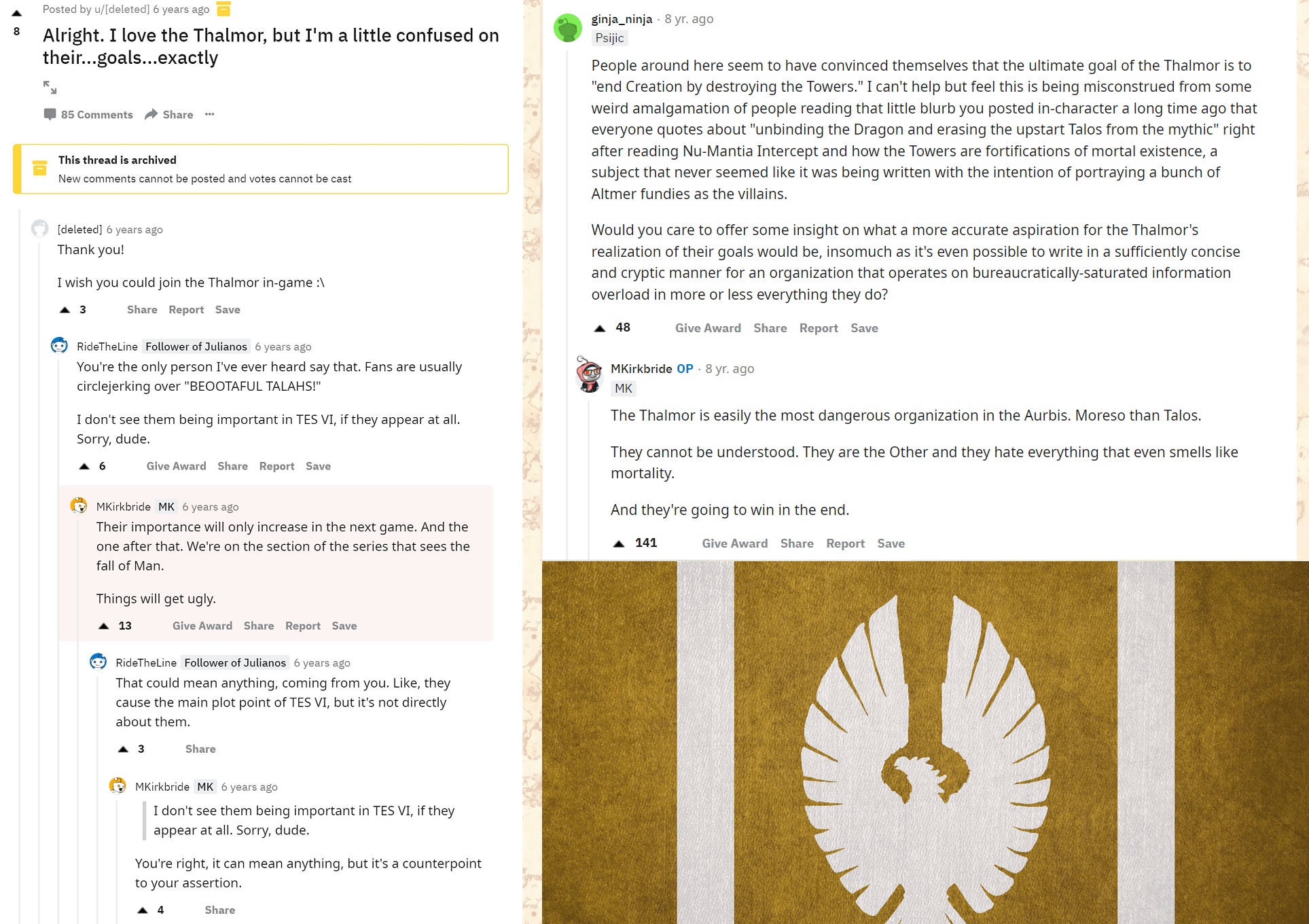 >>737841998They send hit squads to kidnap and torture people who disagree with themSo yes, I would loudly denounce Talos the very moment thalmor justiciar enters the room