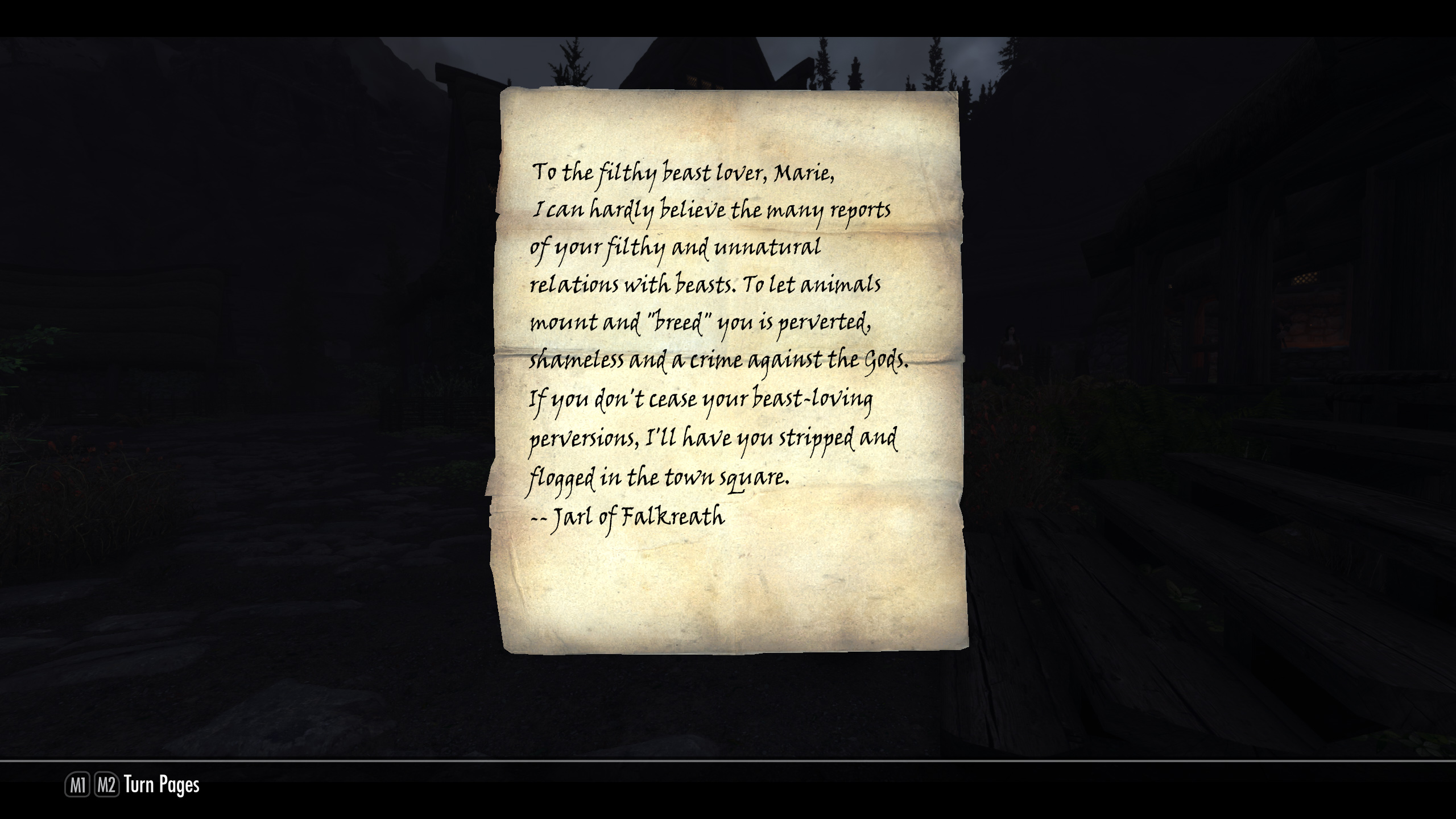 >>737839748The only sympathetic Altmer in Skyrim is the legate you meet in Riften in charge of the Imperial campFaralda being part of the College means she hasn't been in Summerset for ages hence why she has hostile dialogue towards Ancano