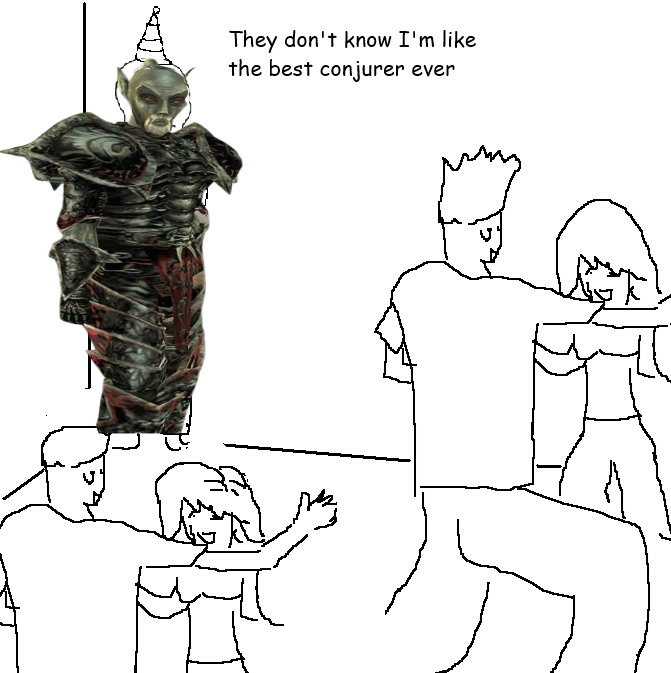 >>737873652You still have SOME face after a dunmer calls you nwah, if an altmer demeans your race and you let him off scot free you deserve your magickal school shut down and your teachers flogged.