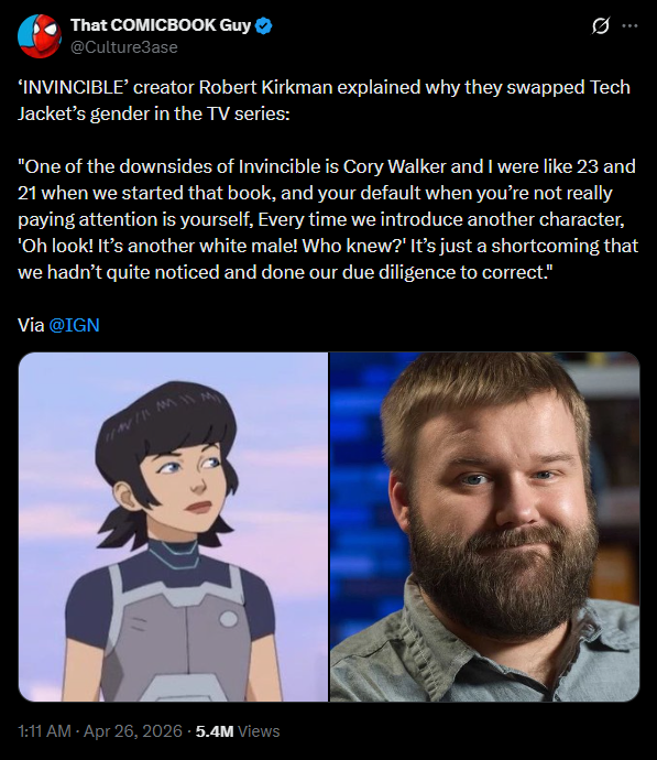 >>737844060I just thought these types were adopted under Viltrumites also aren’t most of the characters in the comics and tv show race swapped from white to brown and black I remember seeing some