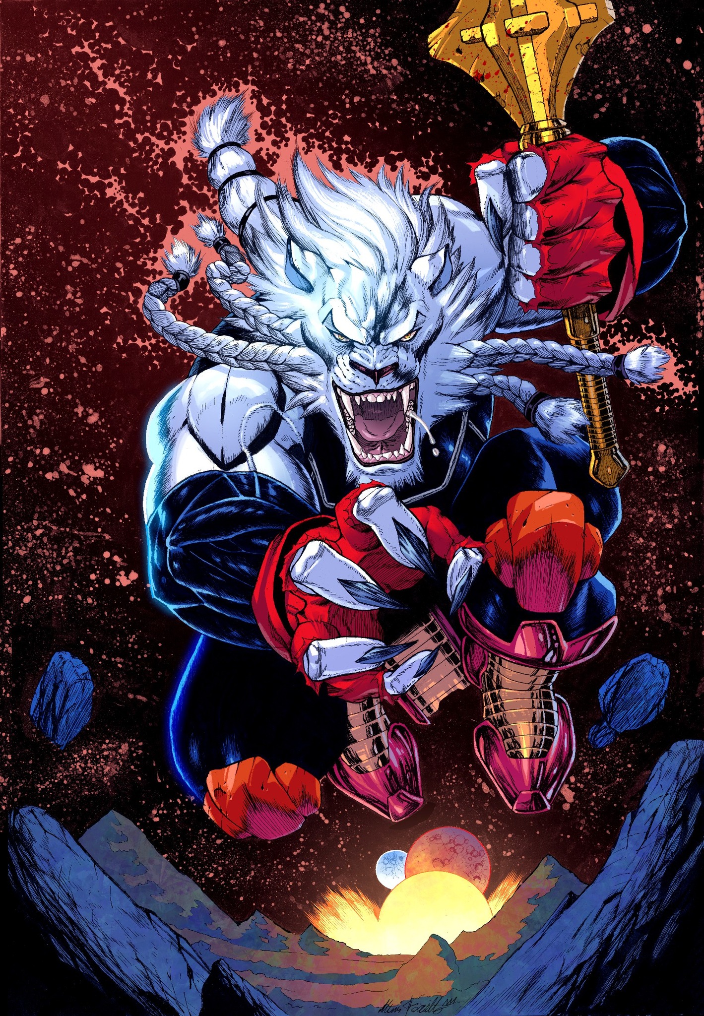 >>737841294Mark bites his throat out while wearing Robot's armor as they fight in the surface of the sun. Thragg burns up and dies and then Allen saves Mark before he dies too.