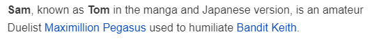 >>737867598>TristenI love how this was like Joey's thug best friend, but then when Joey becomes friends with Yugi, Tristian also becomes friends with Yugi and become like his bodyguards. Tristian even goes to Duelist Kingdom with them, despite not really caring about Duel Monsters. Tea is also the same way, but at least Tea was already friends with Yugi, plus she was supposed to be romantic interest for Yugi. Tristian was just kinda...there. It's the same thing with Duke as well. Duke acts like a villain, gets his ass kicked, and suddenly is super nice and everyone is friendly to him. Joey also pissed off Kaiba so much that Kaiba constantly harassed him, and even Kaiba couldn't deny that Joey made it to the finals on his own.