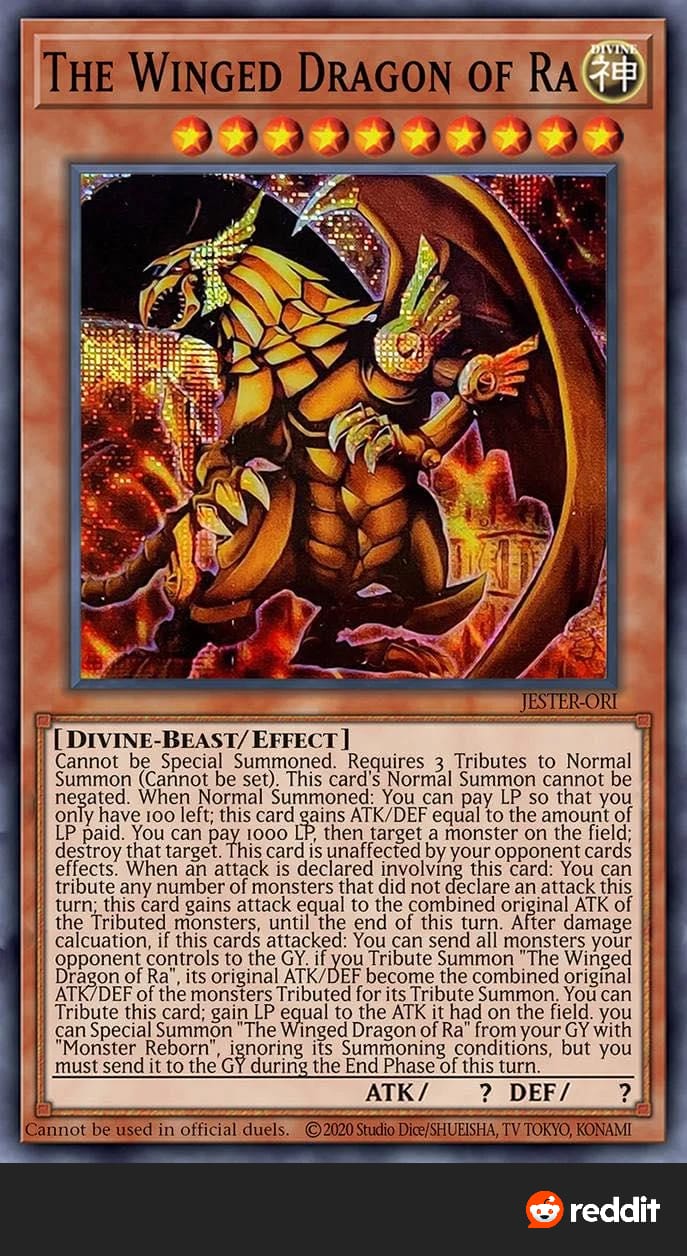 >>737841586It's still the only normal card with 3000 ATK. There was one Black Luster Soldier as normal with 3000 ATK but it was a promotional card iirc.