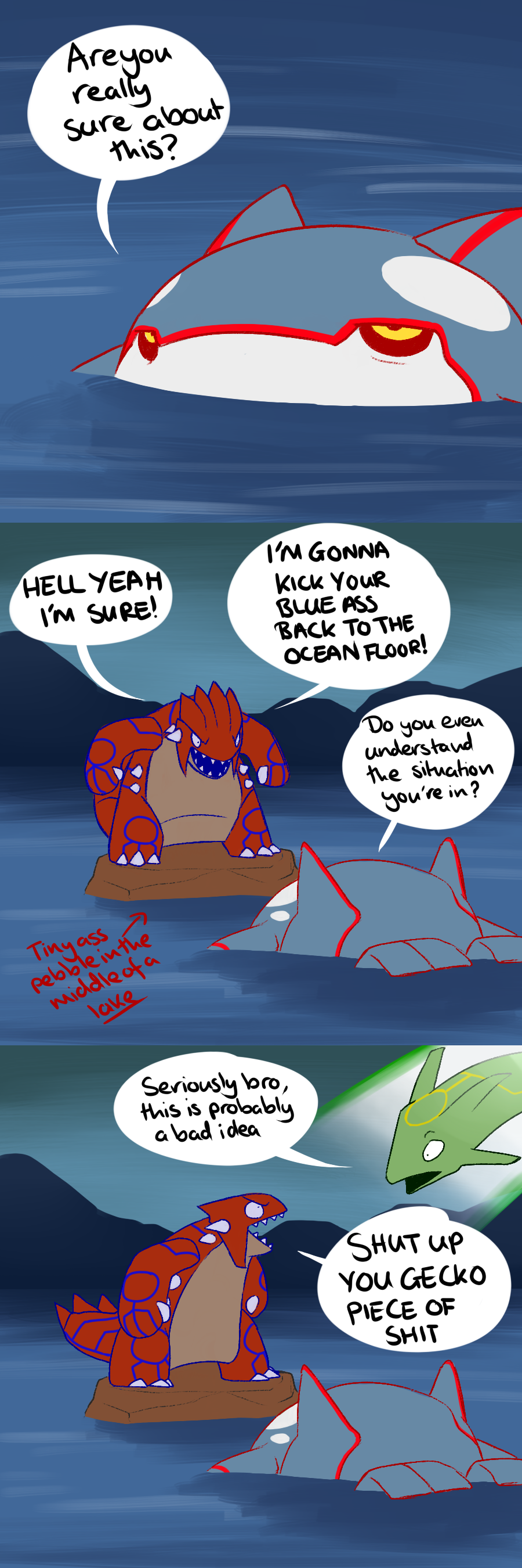 top just looks like stickers because of the lack of shadow and kyogre's weird angle