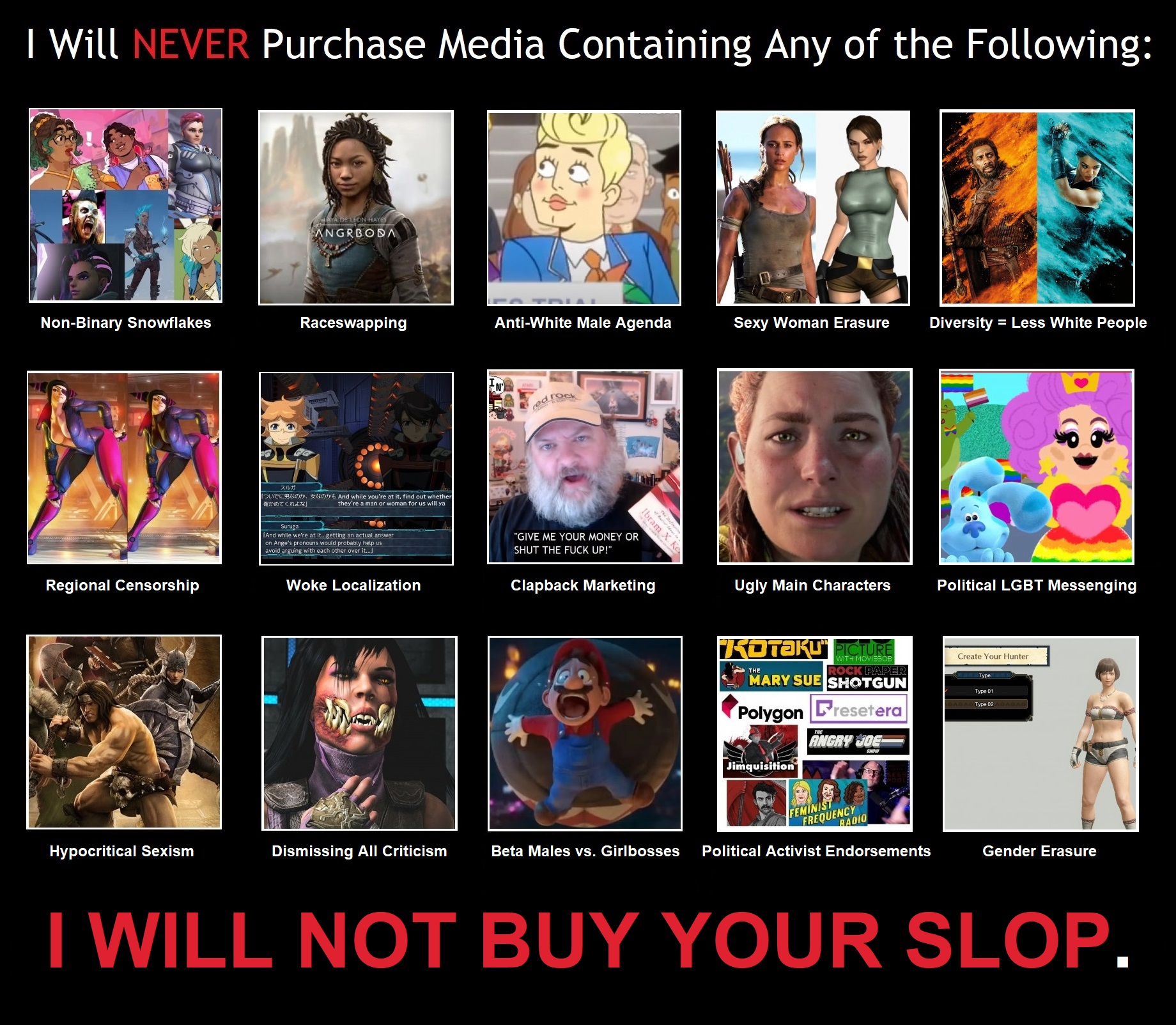 We somehow are completely irrelevant and not who games are for anymore, but also we still control every game and can arbitrarily allow them to succeed or fail.